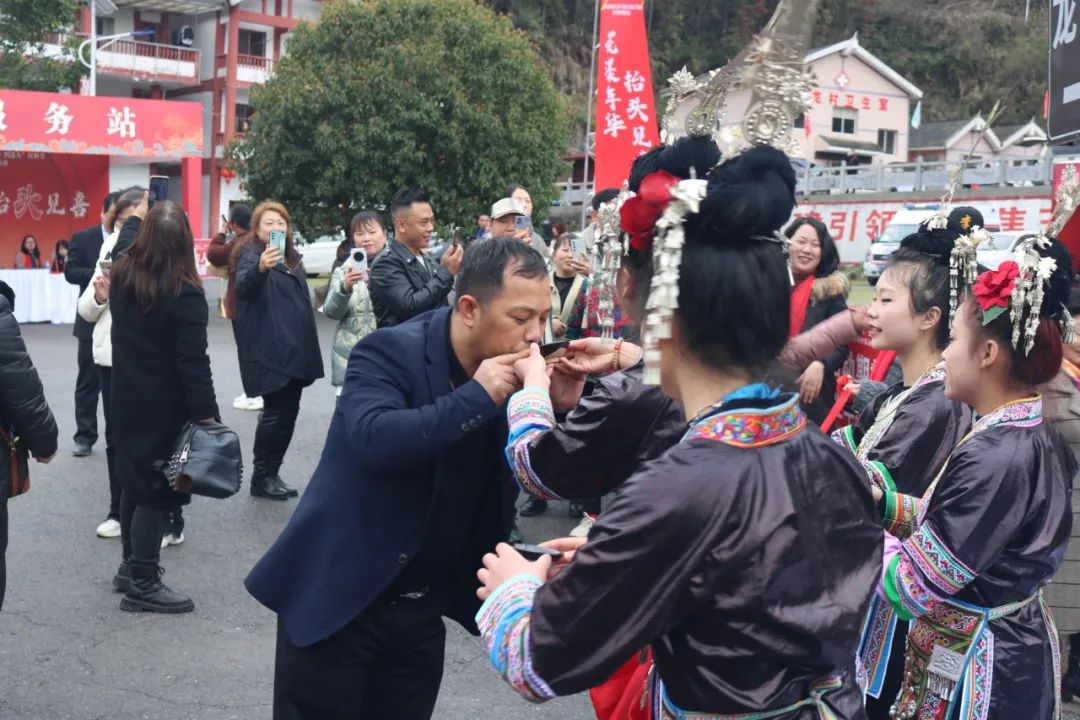 内容:舞蹈队唱敬酒歌、倒拦门酒,对前来嘉宾敬酒,舞龙队表演