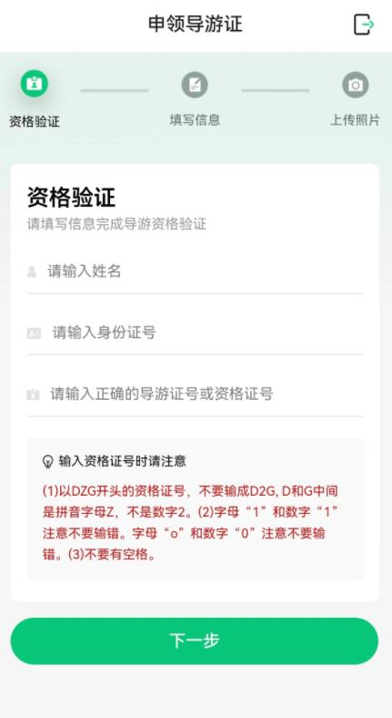 依次上输入【资格验证】-【填写信息】-【上传照片】等对应信息。