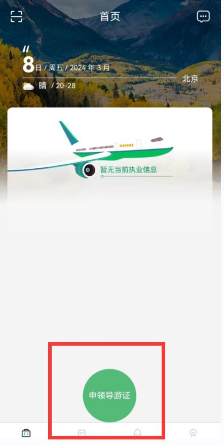 导游注册账户后,还需完成导游信息认证。点击【申领导游证】按钮。