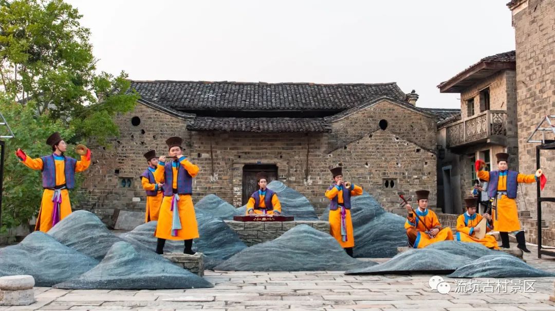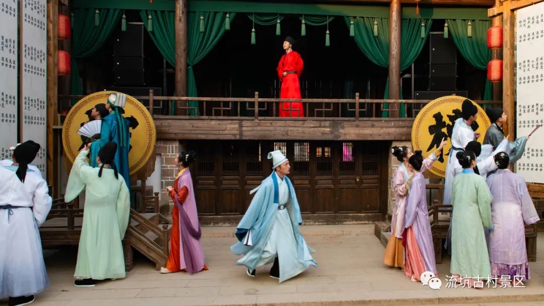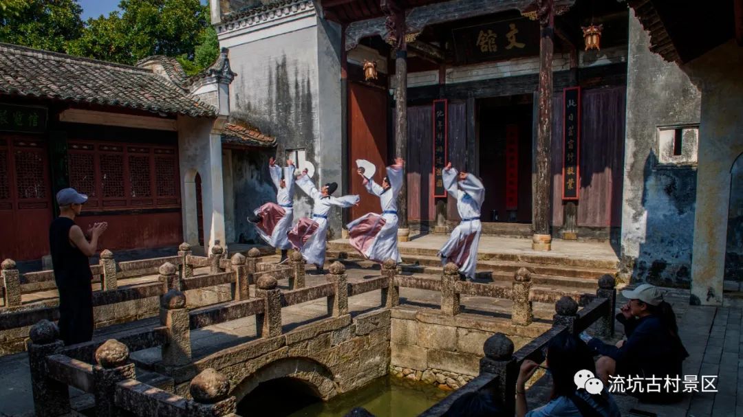 “千年古村,万世流芳!”随着悠扬的旋律响起,大型演艺《流芳》开始上演,通过沉浸式的表演形式,借助戏剧、舞蹈、杂技、武术等手段,将流坑的科举、农耕、商贸、民俗等文化共冶一炉,让这座浓缩体现江西乃至中华文化精粹的博物馆,完成了千年穿越之旅。每个篇章环环相扣,通过“引君入梦”“仕进振族”“以商兴村”“传承不息”等四大表演单元,将游客们带进科举兴盛的年代,再现流坑市井生活画卷。而宫廷小吹会、傩舞,双非遗表演庄重神秘、气势磅礴,向游客展示了传承不息的流坑文化。《流芳》将流坑厚重的人文底蕴进行直观展示,让流坑这座享誉全国的千年古村有了一个全新的表达方式。