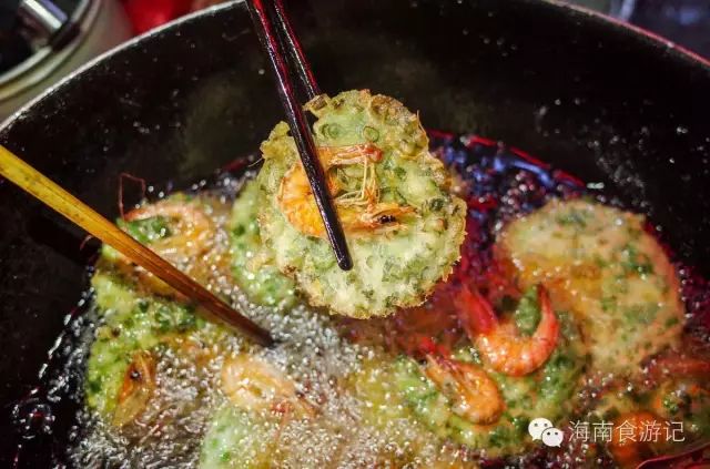 虾饼,只有黄昏后才出摊的阿姨利落的手法如行云流水,葱香四溢与自制醋汁的搭配相当和谐。