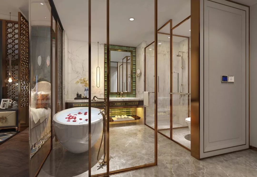 房间配备国际化高端酒店配套设施,一应俱全,就连镜子周边也做了精美的马赛克瓷砖设计,尽显格调。