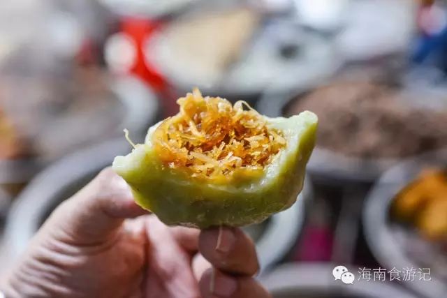 东方市第三农贸市场门口小食摊上的薏粑(bua~)混有碧绿海棠叶汁的芬芳糯米外皮裹着满满焦糖炒制的椰丝甘美可口,两块钱大大一颗的物美价廉吸引多少本地姑娘的驻足赏光。