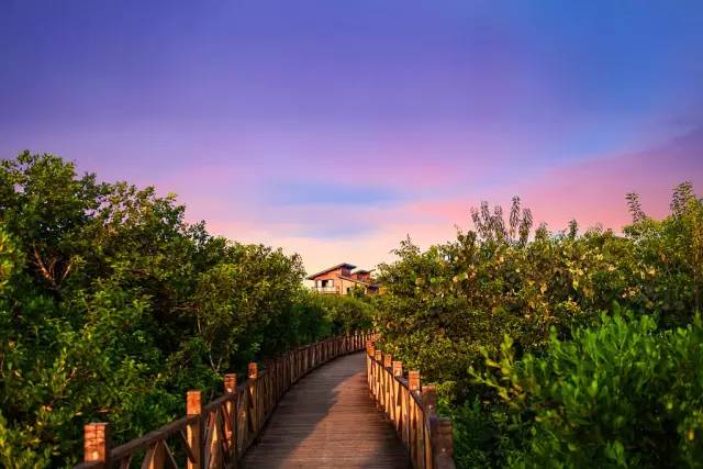 错综复杂的木栈道在红树林的衬托下,更增添几分神秘,在丛林和迷宫中追逐与寻觅,不失为亲子度假的好选择。