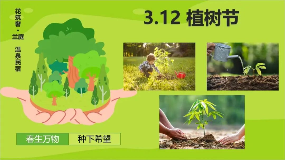 植树节,九九尽,大地春回,春暖花开。我们中华民族自古就有“爱树、育树”的传统那么就让我们一起来花筑奢·兰庭民宿一起,秉承传统美德,美化环境,成为环保小卫士吧!