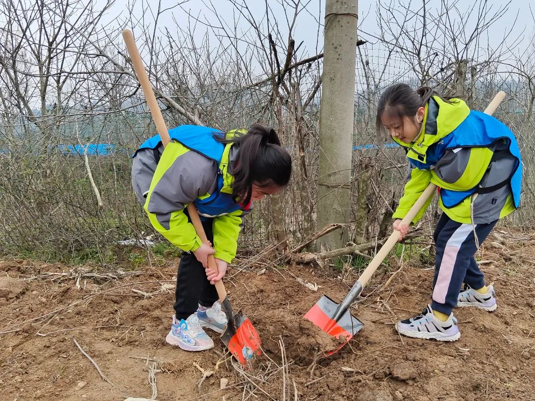 汤池镇大自然生态园研学基地坐落在金冲村(原金冲小学),内设研学及户外拓展区。植树节到来,师生在这里进行播种活动,意义非凡。