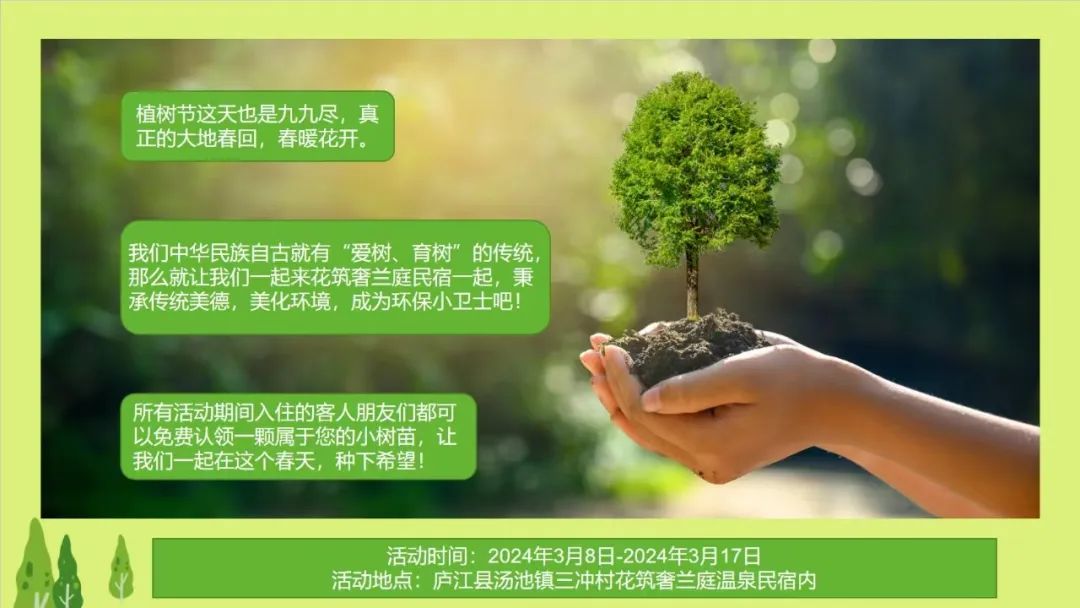 所有活动期间入住的客人朋友们都可以免费认领一颗属于您的小树苗,让我们一起在这个春天,种下希望!