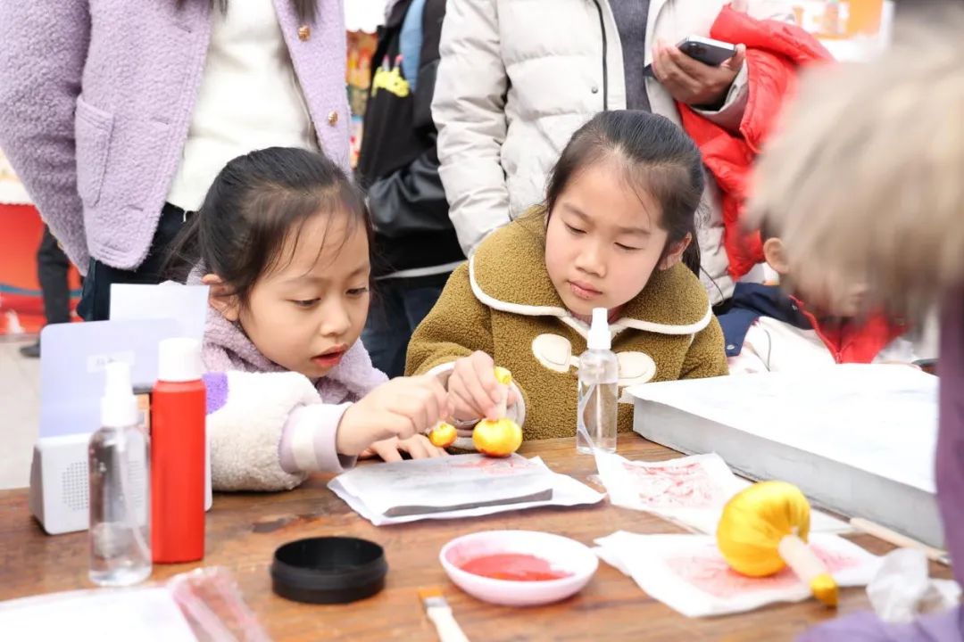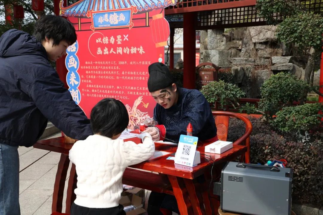 潮玩龙市集也是热闹非凡,龙主题脸绘、龙纹诗文拓画、DIY糖画、龙造型美食、龙主题文创······品类丰富,互动体验感超强,深受大人小孩的喜爱。