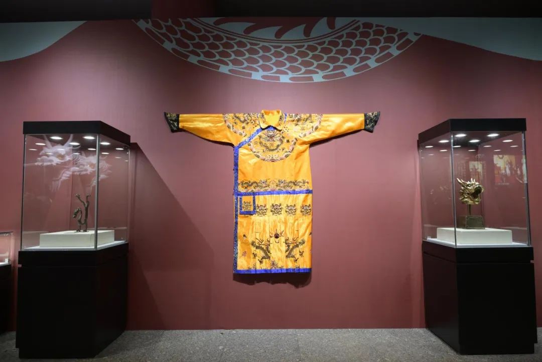 在末代帝师陈列馆还举办了“龙之源——龙文化展”,图文并茂地展出了全国各地博物馆馆藏的与龙有关的文物四十余件;还有与“龙”有关的文物或复制品,如龙凤铜碟盘、璃龙铜酒杯、龙凤呈祥铜镜、龙袍等展品印入眼帘。