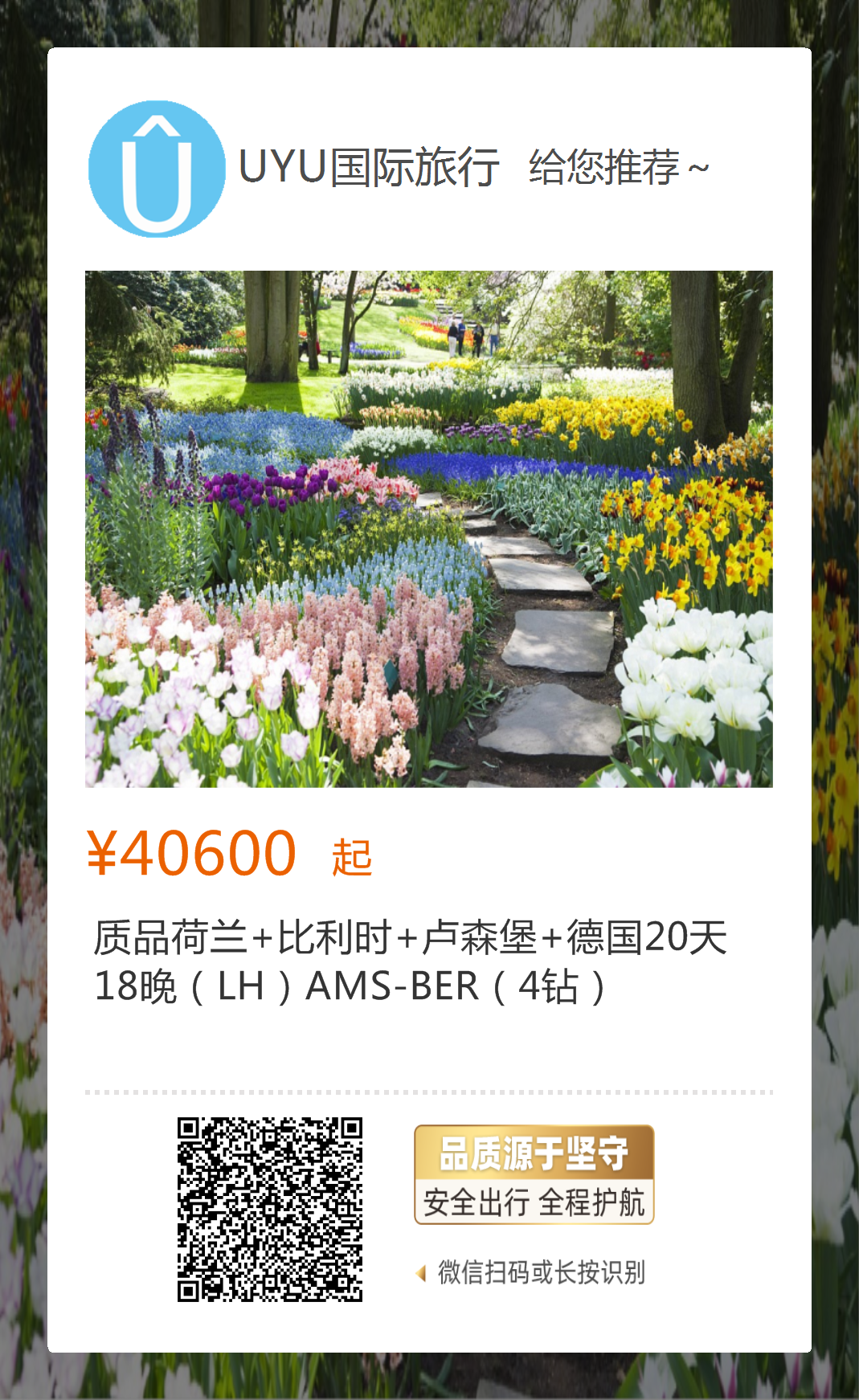 UYU国际旅行|荷你有约 郁金香|荷兰+比利时+卢森堡+德国20天18晚