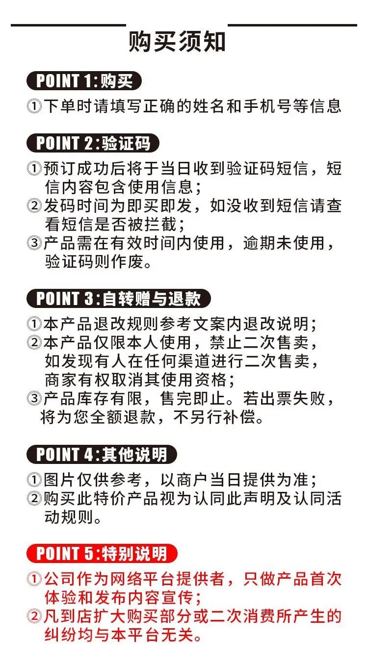 •此产品为限时限量特惠团单,预约成功不退不改,订单未预约未使用可于有效期后7天内在平台公众号点击服务中心——在线客服申请退款,逾期不支持退改。