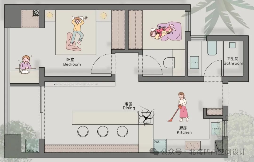 沿海小城的民宿装修。小户型,想要满足休闲度假的要求,势必要损失一些使用空间。