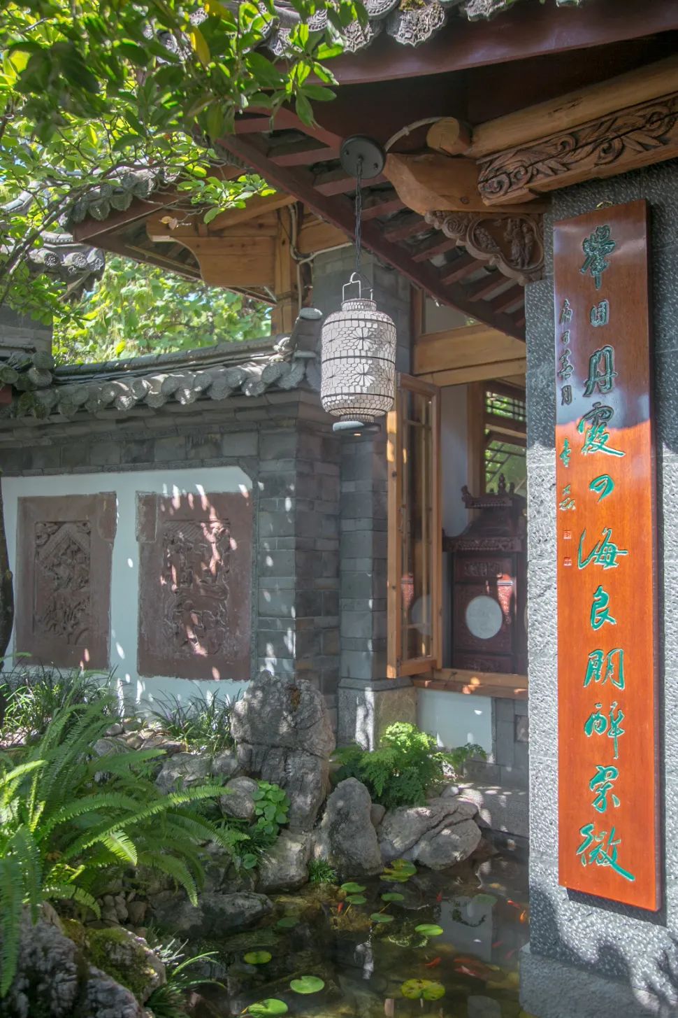 一院一景,看着池塘里的鱼儿,就想到疏影横斜水清浅,暗香浮动月黄昏。
