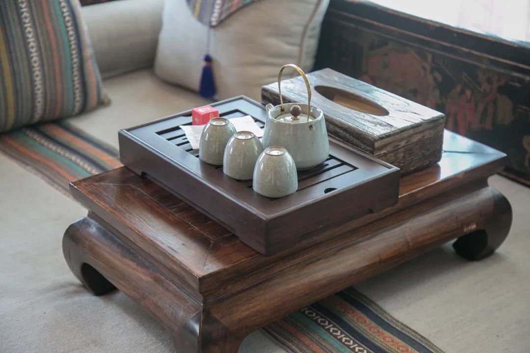 窗外满眼的绿色和文昌宫门口的大树把我不自觉得吸引过去,就想坐在那,看着窗外的风景,静静喝茶。客栈贴心地为客人准备了红糖、生普和熟普,还有牛奶。