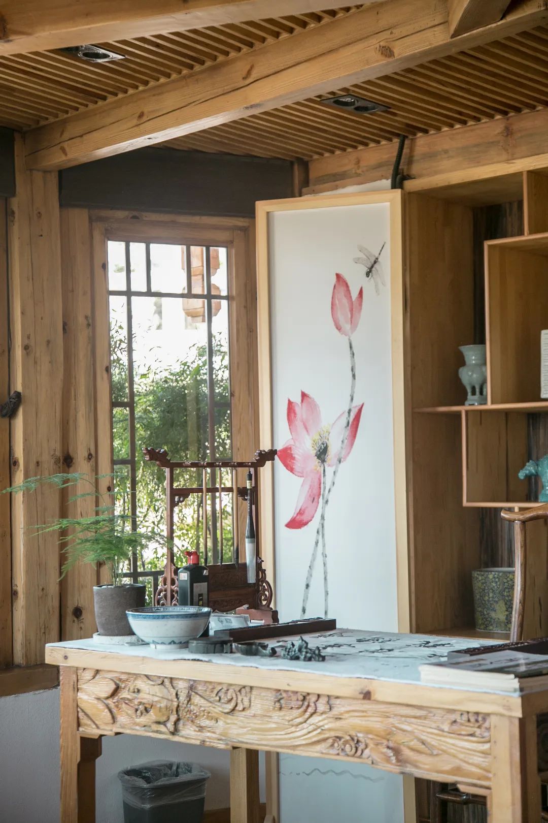 再看着餐厅里的笔墨古筝,就想到谈笑有鸿儒,往来无白丁。可以调素琴,阅金经……康康心细地收集客人写过的毛笔字,等第二次来住的时候找出来给他看,客人怕是要感动落泪。