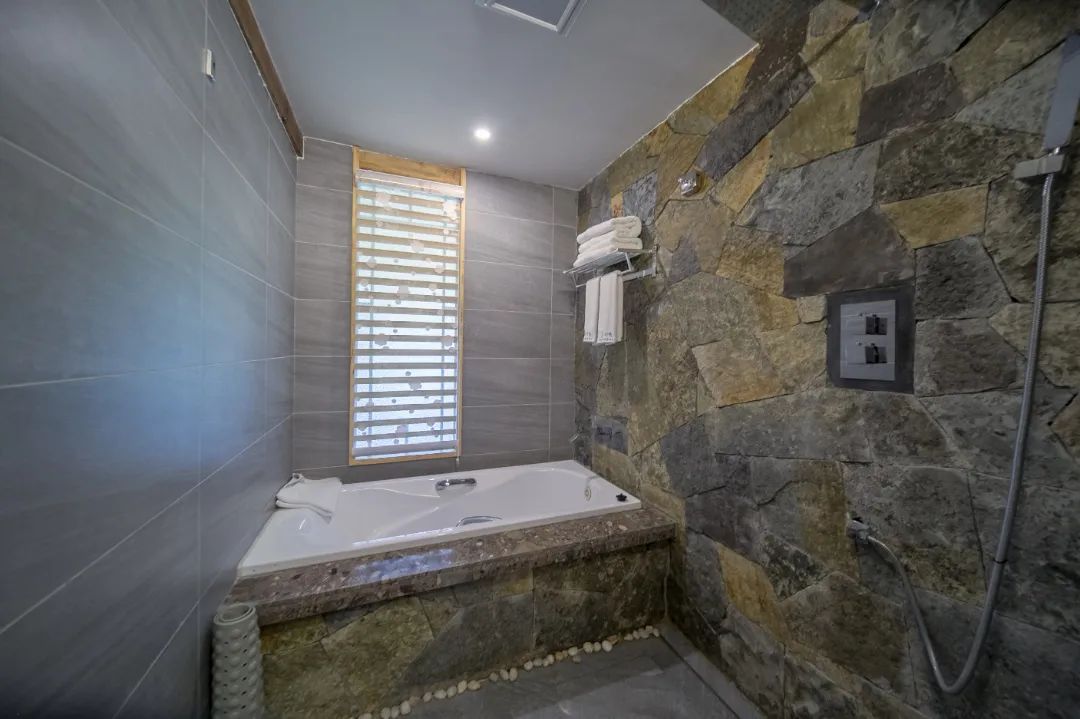 有质感很好的睡衣,有浴缸和Dyson的吹风机,有舒服的卧榻,有感应灯,有电动窗帘……