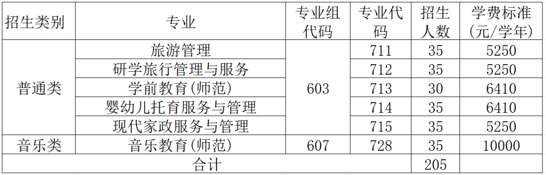 说明:1.学制:3年;2.住宿费:1200元/学年;3.音乐教育专业招生主项声乐器乐均可。