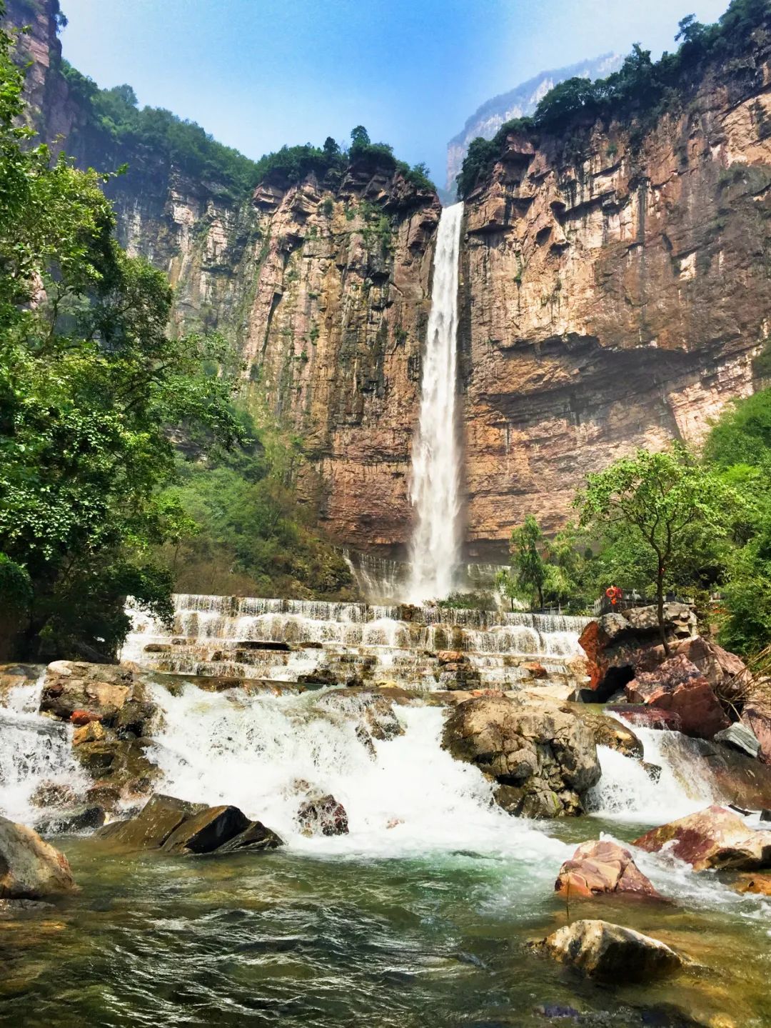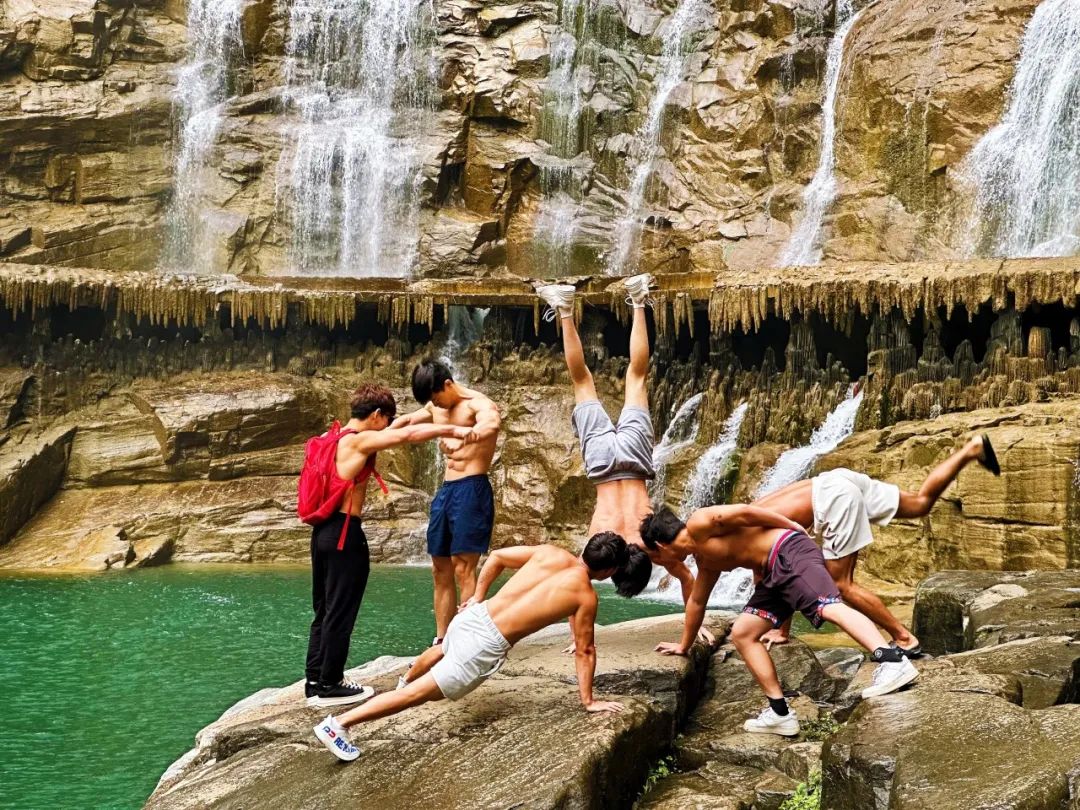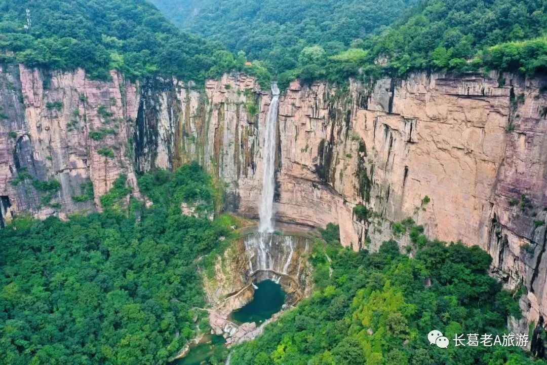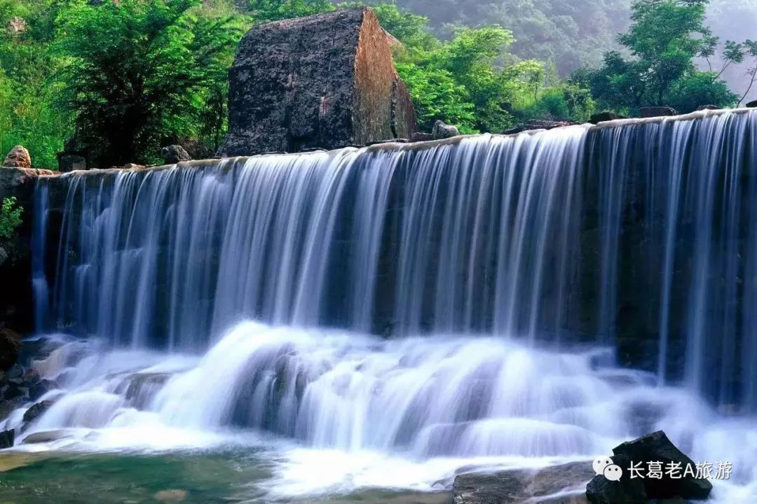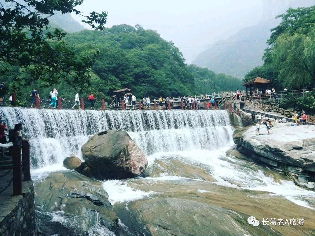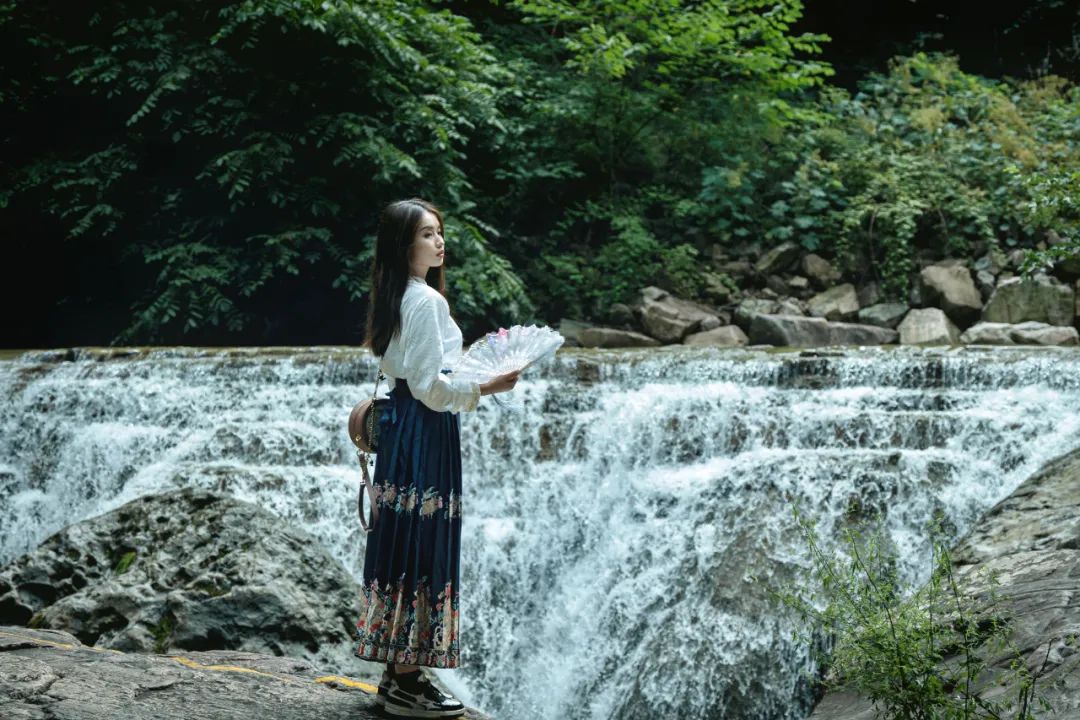 八里沟北方水世界,中原最大的瀑布观景群,这里的瀑布由一排排的小瀑布叠加而成,增加了几分宽度,恢宏磅礴的气质丝毫不减。瀑布下方汇聚成了众多潭水,潭水很多,你可以称之为湖泊,只不过这里的湖泊下方是瀑布,更像是一个整体,只是被硕大的石头切割开来,站在山脚下往下俯瞰,一条瀑布上面还是瀑布,灵秀翠绿的山峰半掩其中,颇有一种雄伟壮观的气质。