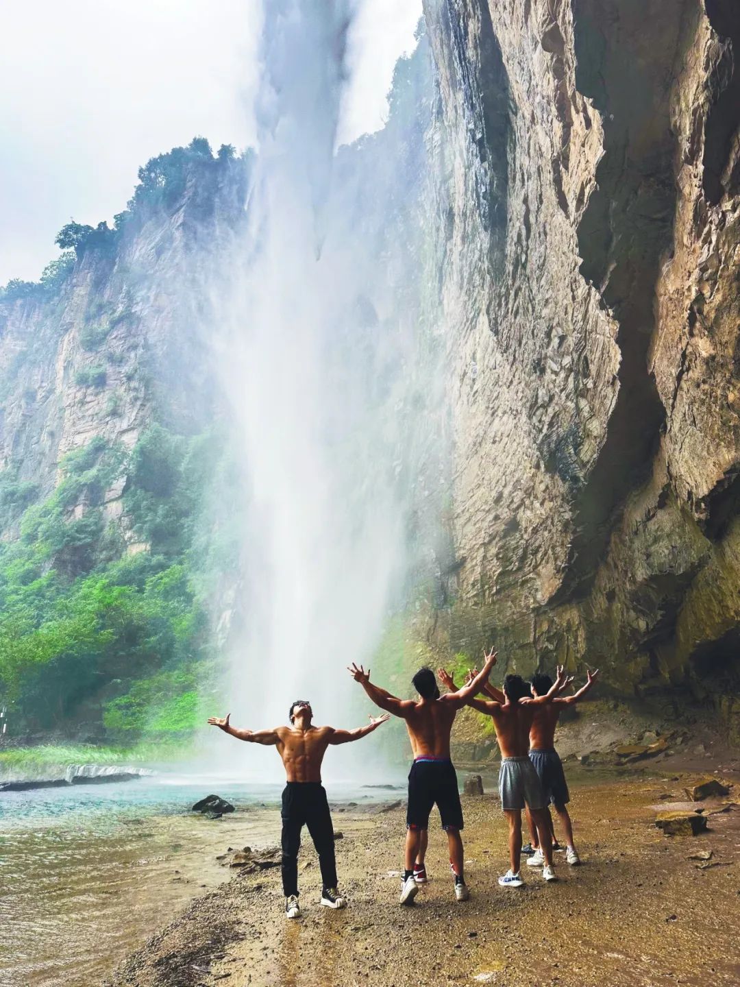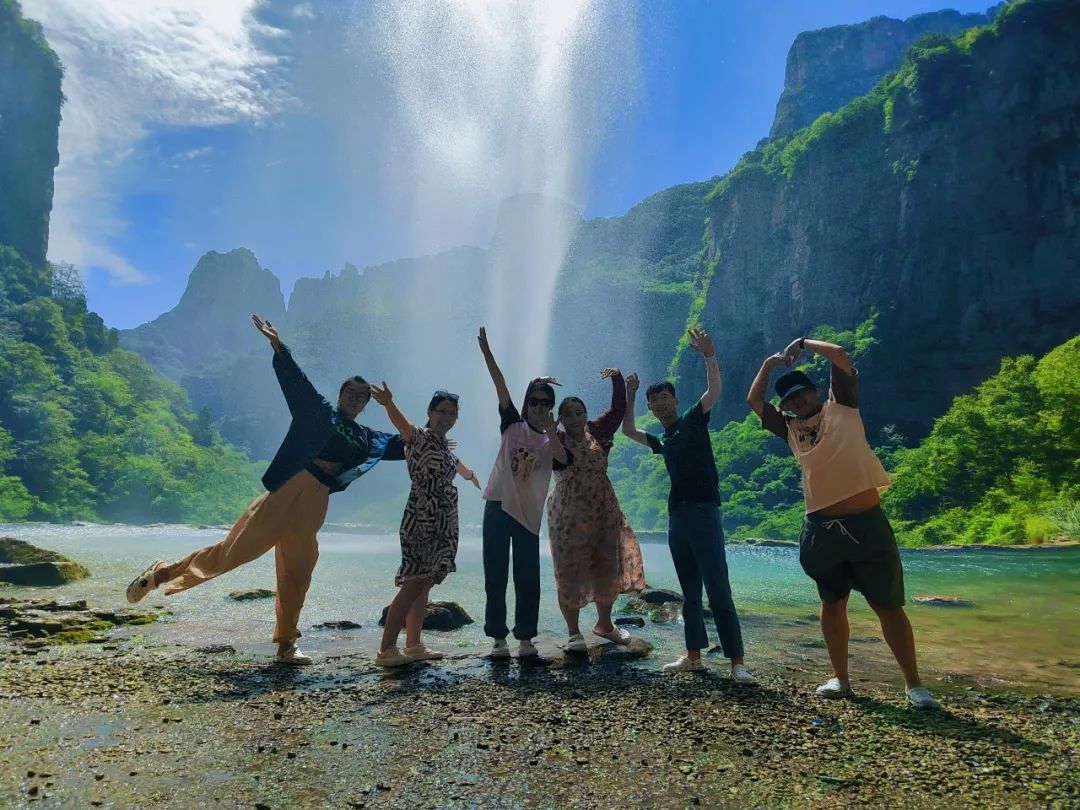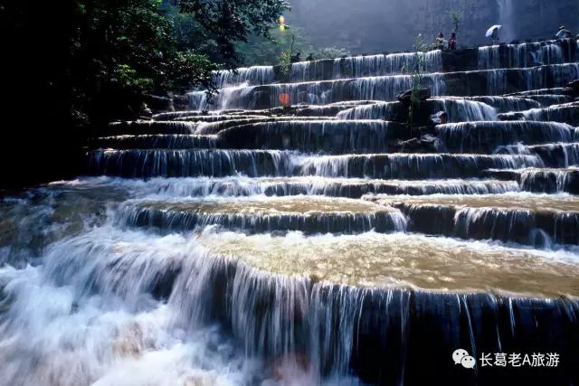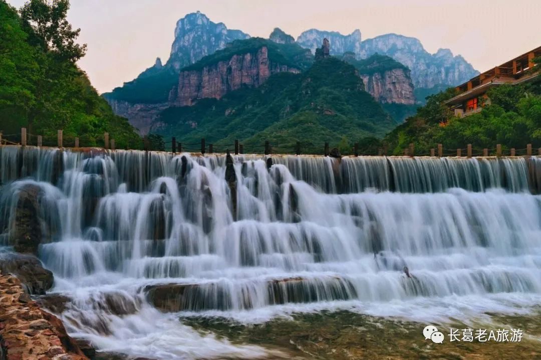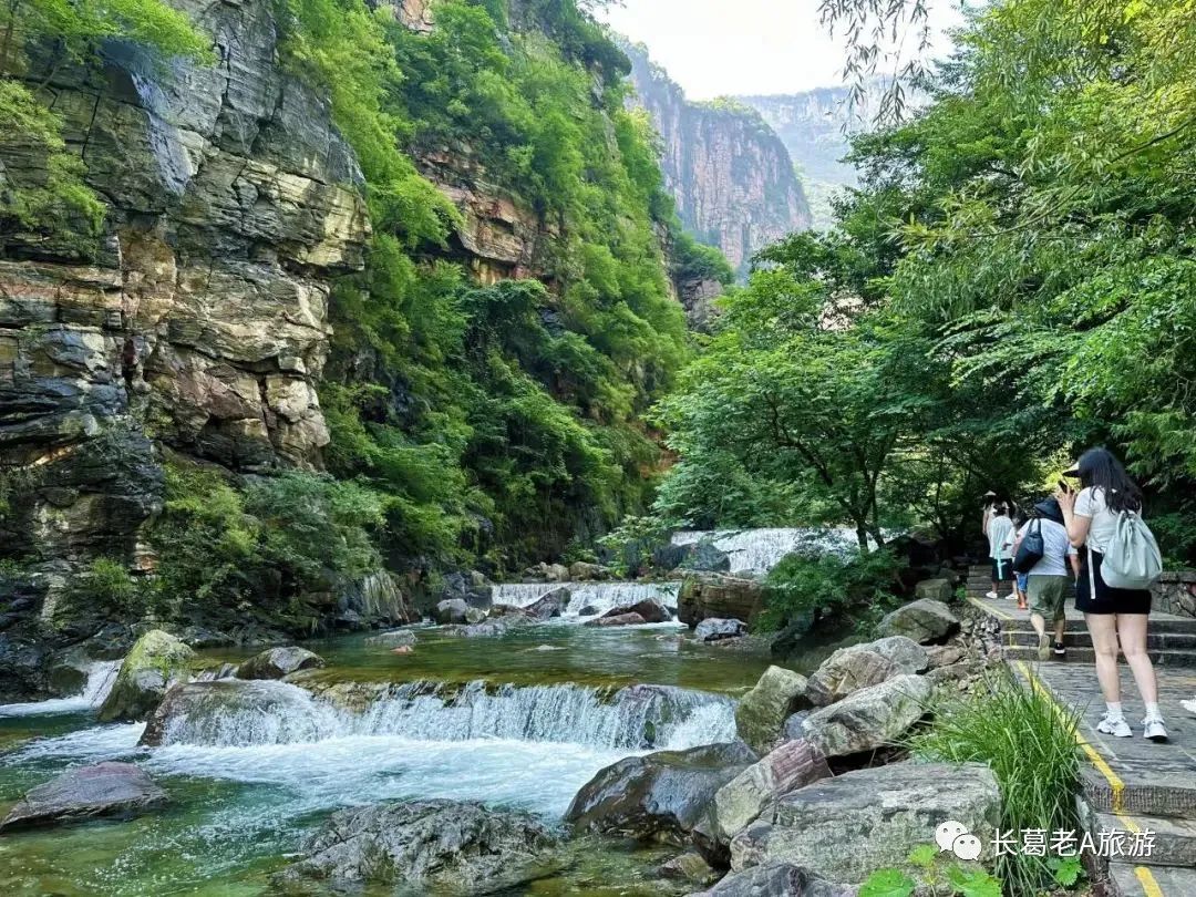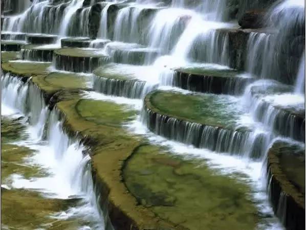 八里沟北方水世界,中原最大的瀑布观景群,这里的瀑布由一排排的小瀑布叠加而成,增加了几分宽度,恢宏磅礴的气质丝毫不减。瀑布下方汇聚成了众多潭水,潭水很多,你可以称之为湖泊,只不过这里的湖泊下方是瀑布,更像是一个整体,只是被硕大的石头切割开来,站在山脚下往下俯瞰,一条瀑布上面还是瀑布,灵秀翠绿的山峰半掩其中,颇有一种雄伟壮观的气质。