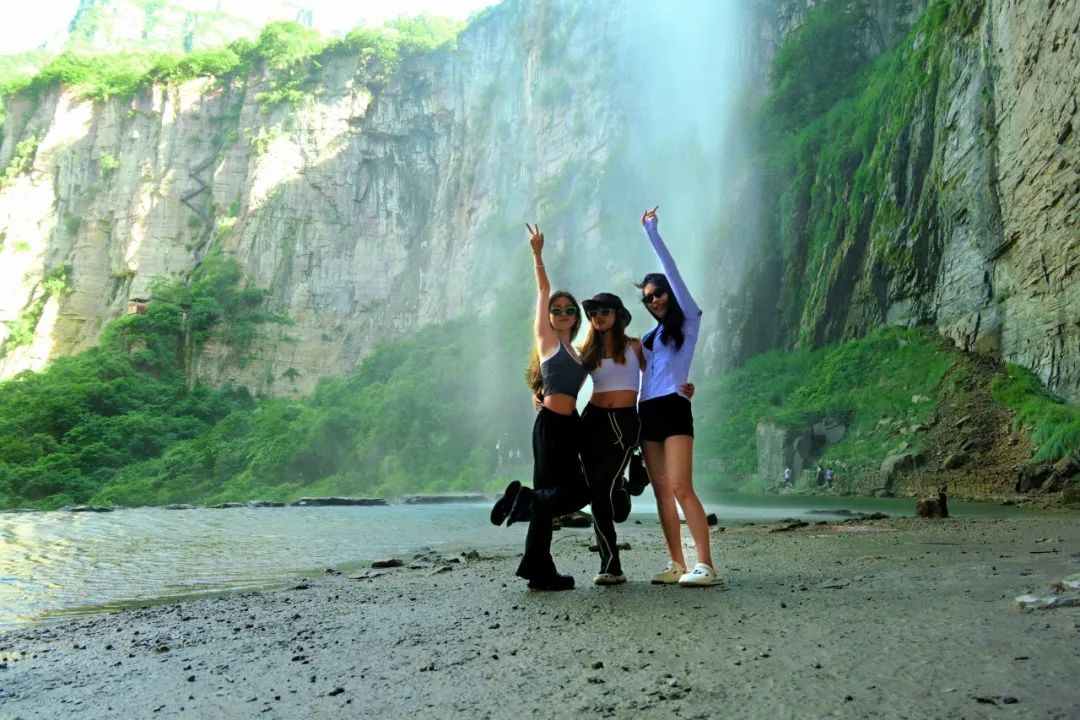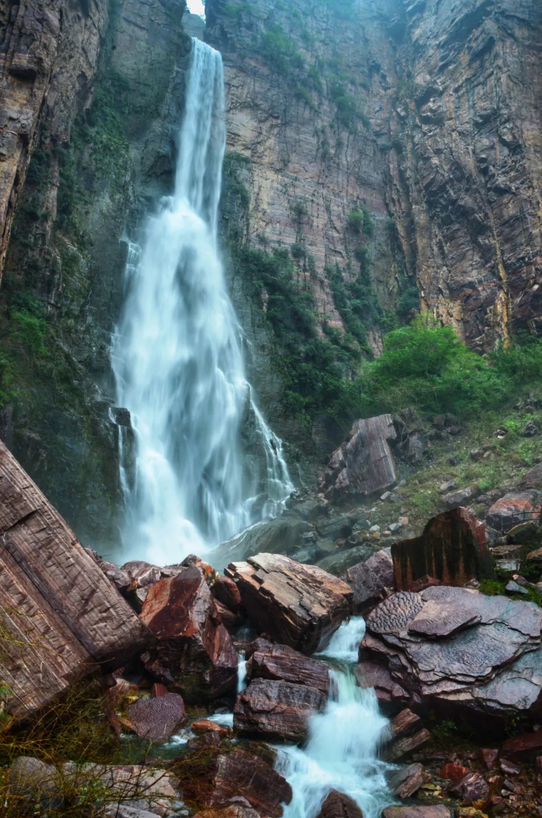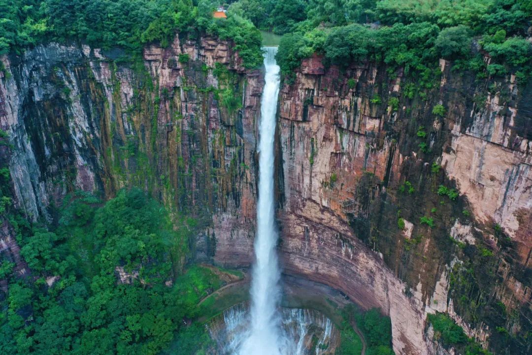 “红石河”位于大瀑布源头,由于海拔1100米,故又名“太行天河”。河床为红石砂岩,光洁平莹,碧水横溢,红绿相映,色彩斑斓,明丽如画。这正是王维“明月松间照,清泉石上流”诗句的写照。有百年好合树、百年老屋、观音洞、回音壁、蘑菇石、黑龙潭、仙女池、五彩泉等景点。