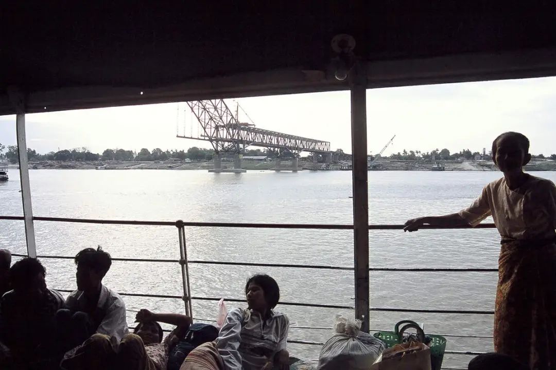 返回旅馆,赶上去瓦城的长途车,17:30发车,昏然睡去,醒时见窗外雨季落日,一道湍急江流,江上覆一座简陋木桥,车子小心翼翼碾过木板,满车人前仰后合从这湍流上渡过。摇晃之间,从包里摸出1:4550000缅甸地图,查到卑谬城北有条无名河流,想必是伊洛瓦底江支流之一。