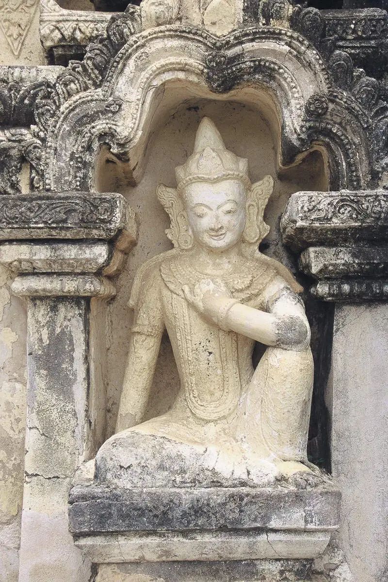 11th c. Gubyaukgi壁画精致,世俗。佛像下文字为Mon。近代塑像总显garish。