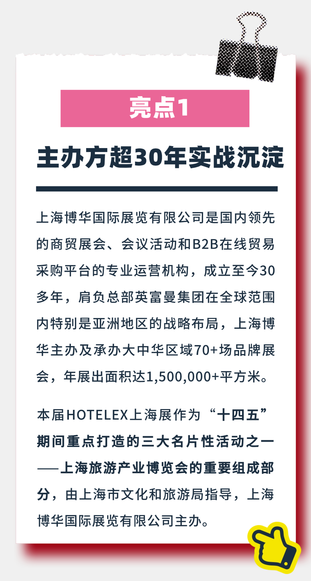 2024 Hotel&Shop Plus上海国际酒店及商业空间、办公及公共空间博览会将于3月26-29日,上海新国际博览中心举办。展品涵盖酒店用品及布草、智慧酒店、酒店设计、酒店加盟、工程定制、建筑装饰、陶瓷卫浴、酒店家具、软装设计、照明灯饰、商业设计、智慧办公、清洁物业等,同期举行“悟与行的探索之旅”系列活动,将吸引建筑师、设计师、酒店管理公司、商超百货业主、地产商、物业管理公司等终端买家和进出口商、采购商等专业观众前来交流探讨。