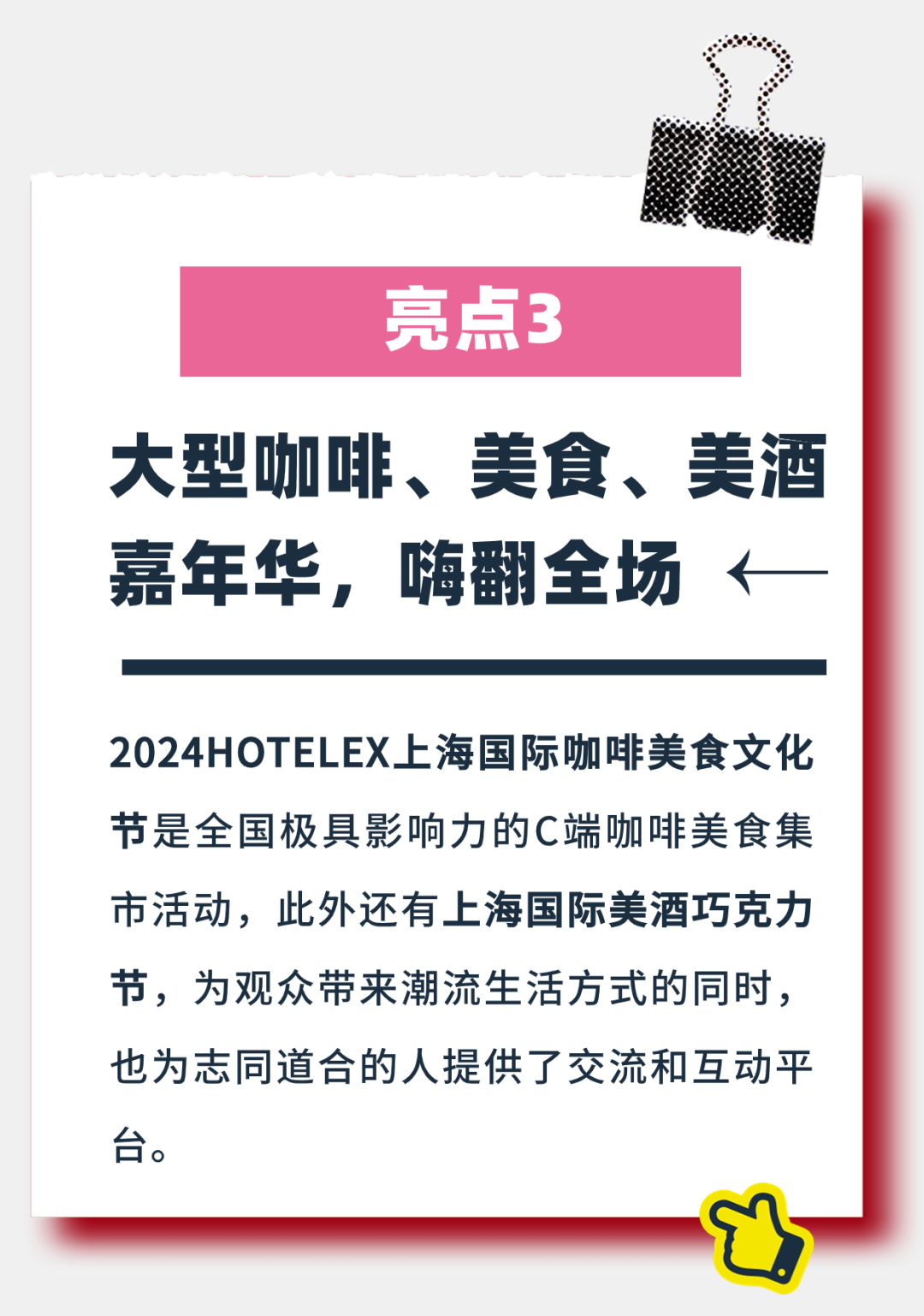 作为HOTELEX酒店与餐饮展的拳头板块,2024HOTELEX上海展集合行业优质资源,精心打造咖啡特色展区,汇聚咖啡产业链条各个环节的头部企业和明星品牌,包括王力、香季、品克、百胜图、MHW-3BOMBER、白矮星、Melitta、来回、索玛、艾渥卡、捷辉、NUOVA DISTRIBUTION CHINA、格米莱、OATLY、CIMBALI、MONIN、和沁、MingS、咖博士、福腾宝、开展、酒总、麦诺……等在内的知名品牌,深入展示咖啡豆种植、采购、加工、运输、贸易以及咖啡设备制造等流程环节,以及热点爆款产品现场制作展示体验等,为咖啡行业的细分、个性化发展,提供综合赋能。