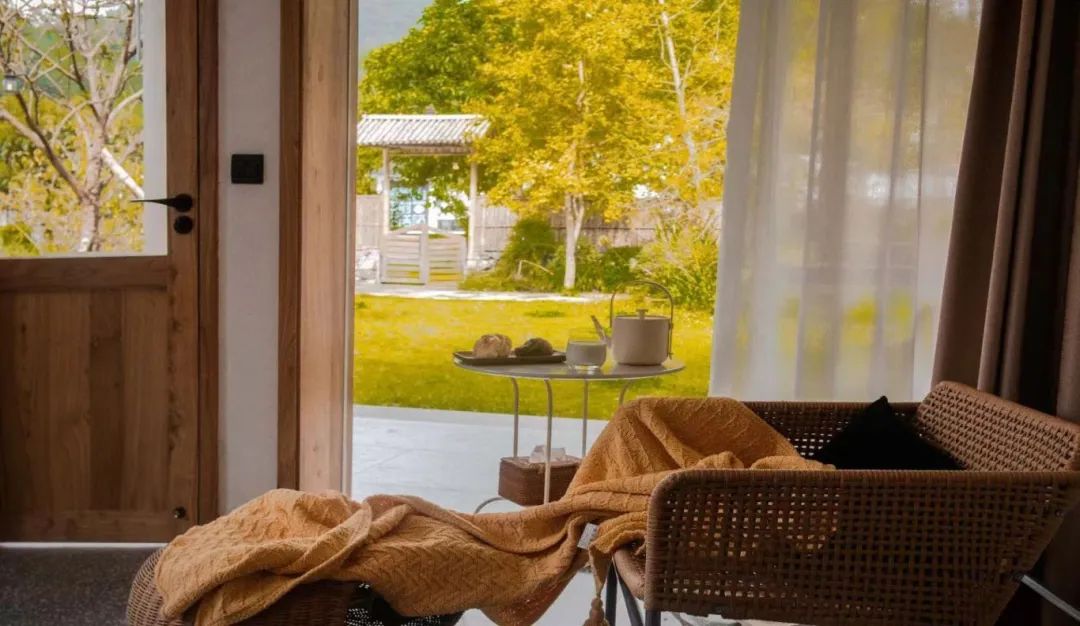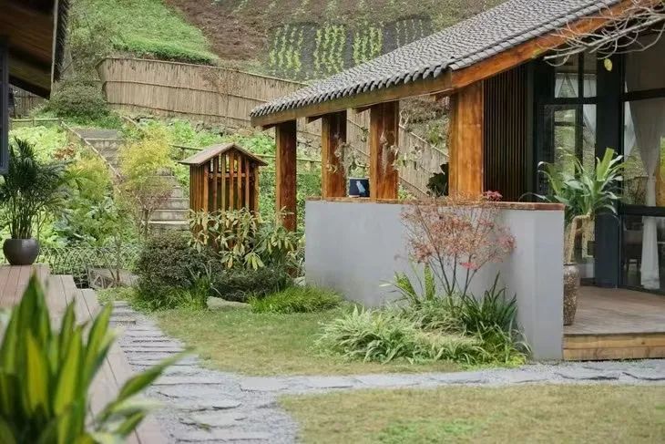 古朴的大门里是儿时记忆中的小院。青灰瓦墙、竹编的栅栏和充满童趣的装饰,一派淳朴祥和,正是享受生活的好去处。