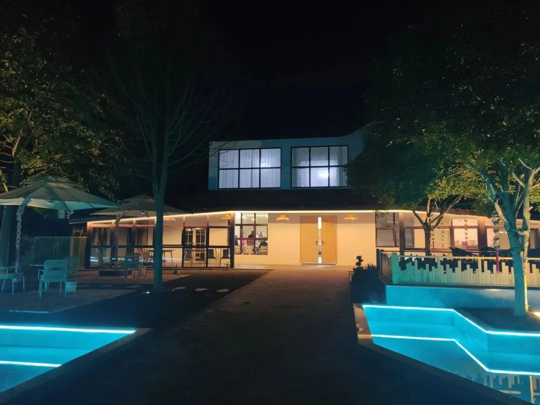 踏入院门,草坪上的小搭石,颇具设计感的方桌,作为桌花的新鲜腊梅无一不体现出精心布置。白天日光下的花园餐厅是精巧的庭院,若是趁着夜色踏入这里,暖色的光线让田园风格的餐厅摇身一边现代艺术风格,让人体会到冬夜中“柳暗花明”的温暖。