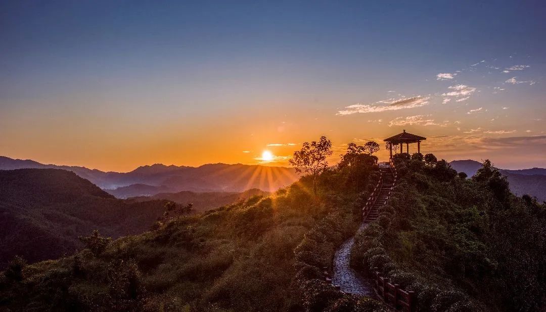 涌华观景台位于金城社区。清晨第一站来到涌华观景台,这里视野开阔,从山巅眺望远方,看朝阳从天际洒向群山,水蓝色的天空被朝阳镶上金边,与群山一同融进冬日的画布,观景台被群山簇拥化为广袤大地的眼瞳。