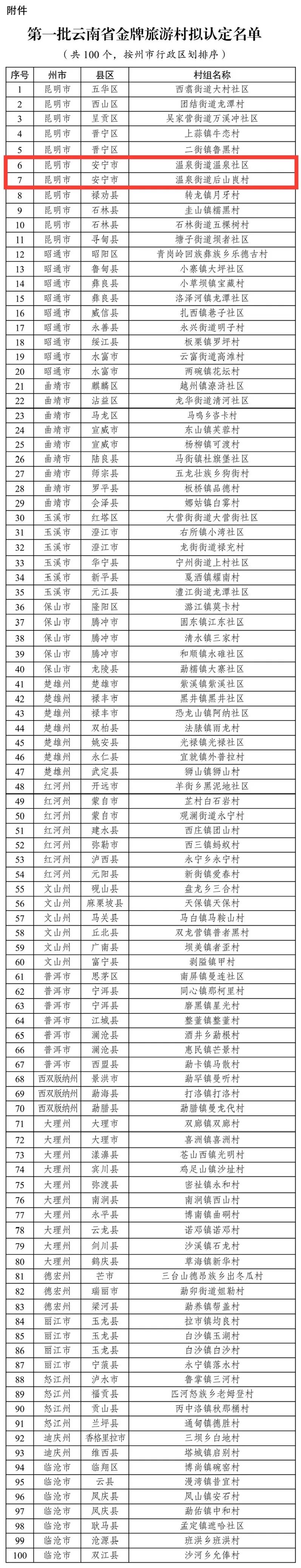 您现在的位置是:首页 > 国内旅游目的推荐 > 正文 国内旅游目的推荐 喜报!安宁这两个村上榜金牌旅游村,快看看你去过吗 admin2024年03月12日 20:14:52国内旅游目的推荐119 安宁招聘群找兼职、全职、招聘点击进群安宁相亲群安宁本地单身嘉宾,相亲交友点击进群关于第一批云南省金牌旅游村拟认定名单的公示为全面贯彻党的二十大精神和2023年全省乡村旅游现场推进会精神,进一步推动拓展脱贫攻坚成果同乡村振兴有效衔接,推进全省乡村旅游高质量发展,拓宽农民增收致富渠道,促进农文旅融合发展,省文化和旅游厅按照云南省金牌旅游村创建办法、创建标准及评分细则,组织开展了第一批云南省金牌旅游村评定工作。经州市申报、专家材料评审、实地评审环节,拟认定昆明市五华区西翥街道大村社区等100个村为第一批云南省金牌旅游村。现将拟认定名单予以公示,公示期自发布之日起5个工作日。公示期内如有异议,可通过电话或传真提出意见。咨询电话:0871—64608334;监督电话:0871—64608362。特此公示。云南省文化和旅游厅2024年3月11日附件:第一批云南省金牌旅游村拟认定名单来源:云南省文化和旅游厅安宁新城、老城、昆钢片区最新租房、售房信息!免费找合租、免费找房子、免费找铺面!在安宁生活你一定要关注!安宁人识别图片二维码就可以快速发布招聘,查看安宁40000份各式人才简历!销售、设计、业务员、厨师、配菜、文员、出纳、司机、搬运工、漆工……应有尽有!各位赶快!! 转载请说明来源于"旅荐网",部分内容转载自网络,如有侵权请联系qlwl@foxmail.com删除 本文地址:https://www.15386.cn/post/21634.html 上一篇 乘龙气 彭派游|旅游攻略已出!快来桂花体验“彭派年味”! 下一篇 县政协副主席许也率队到南河专题视察旅游工作 相关文章 三峡龙脊旅游全攻略 1 西安旅游4天三晚攻略来了哦. 临沂·旅行攻略|『探秘琅琊』探古寻今·追龙溯源,琅琊古城,龙园古城,王羲之故居探秘文化之旅! 郴州旅游出行攻略|租车/包车一站式指南,轻松玩转山水郴州! 延安极为详细不踩坑旅游攻略(红色圣地+黄土风情) 济南3天2晚旅游攻略(4月春日版) 北疆春夏季旅游攻略:4-8 月赏花避暑,自驾纯玩路线全攻略 中国农民丰收节|寻根+旅游:主场万荣旅游攻略 贵阳五一旅行全攻略 葡萄牙旅行攻略:探索大航海时代的浪漫与传奇 发表评论 取消回复 评论列表 这篇文章还没有收到评论,赶紧来抢沙发吧~