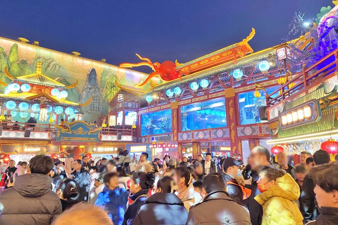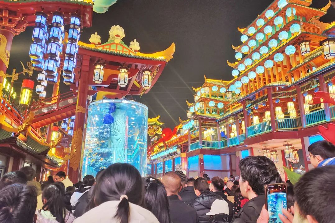 夜幕降临,街区中的山海经、西游记、十二生肖等元素,以及结合平湖文化和东海龙宫小白龙传说等国潮文化,仿佛瞬间“活”了过来。漫步街区,游客可以沉浸式感受“平湖山海几千重?”的磅礴魅力。
