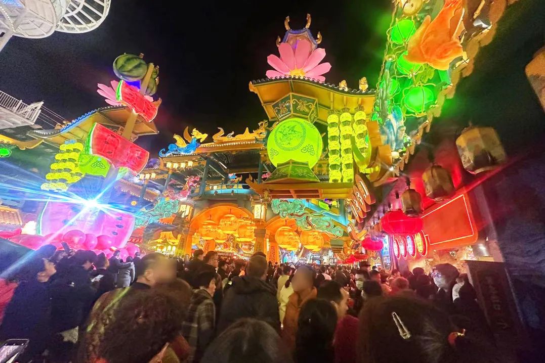 同样位于平湖市的“平湖山海几千重?”文旅街区,以绿色为基调,大大小小的黄绿色西瓜灯以及构筑物,营造出绿色、环保的自然氛围。作为长三角首个不夜城项目,“平湖山海几千重”文旅街区还以山、水、田为主题元素,并聚焦平湖本地文化IP,实现“文、旅、商”的深度融合。