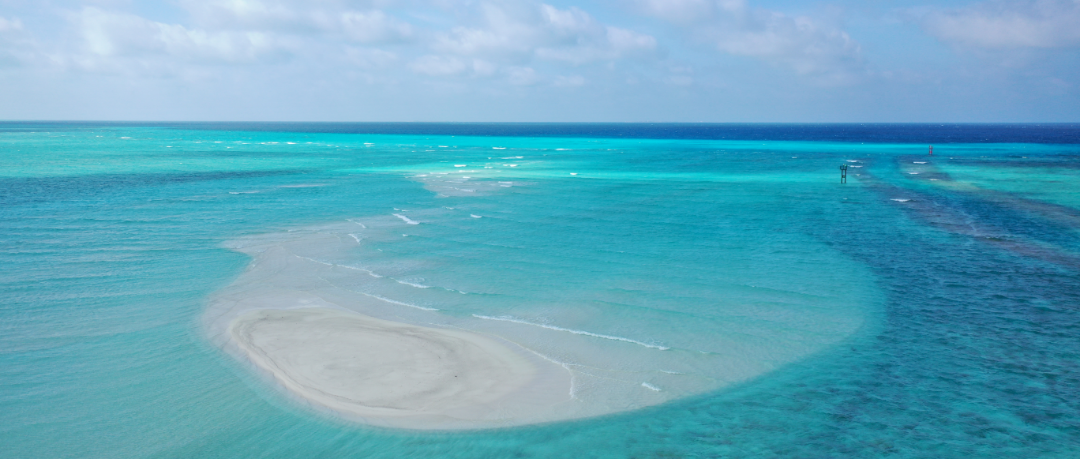 西沙群岛陆地总面积约10㎞²,分布在50多万平方公里广袤的海域上,陆地与海域面积约比为1: 50000,一个个岛屿沙洲恰似蔚蓝南海里闪亮夺目的珍珠。