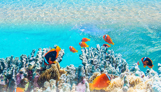 岛屿四周的海水十分洁净,最高能见度达到40米。在这晶莹剔透海水中有着难得见到的神秘空间:一丛丛、一簇簇的珊瑚像盛开的鲜花覆满整个海底,金黄、雪白、鲜红……色调各异,五彩斑斓。