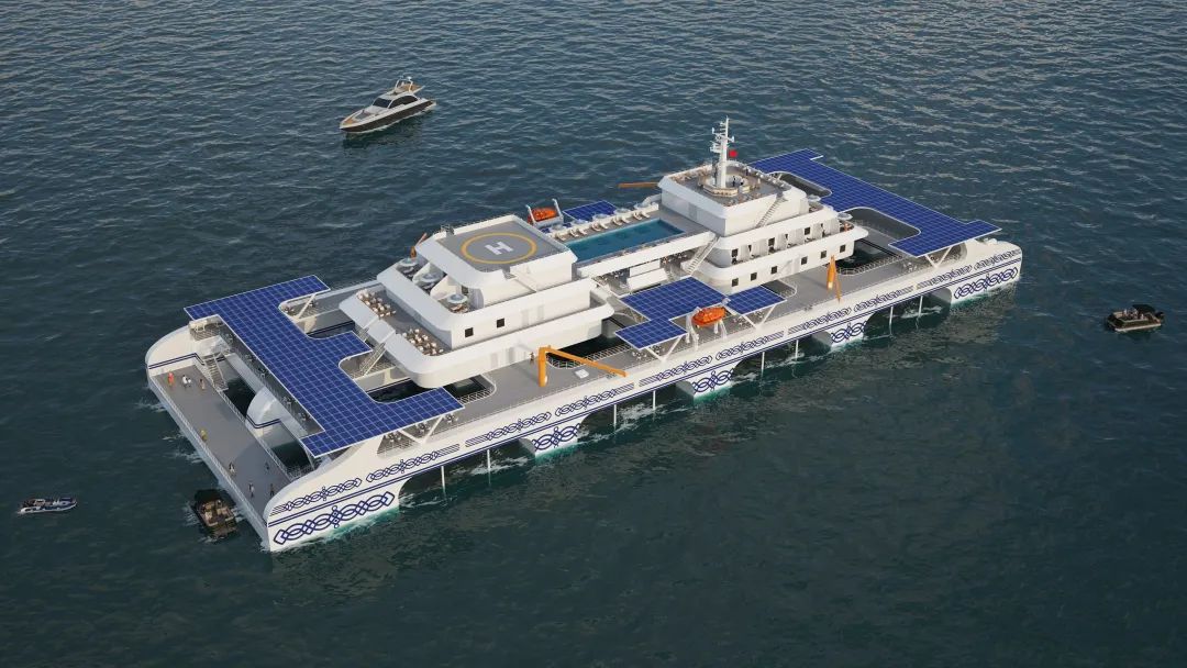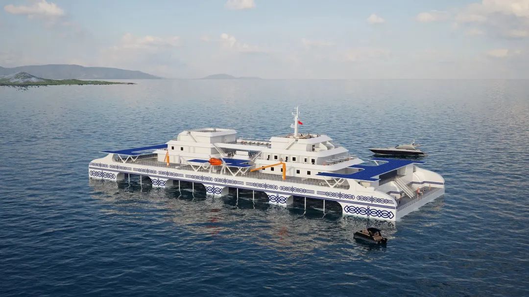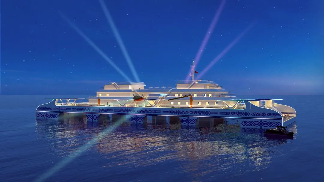 该平台开展休闲渔旅活动时,最多可容纳250人,其中住宿游客 92 人,配备40套游客房间、休闲餐厅、娱乐室、儿童活动室等休闲渔旅设施,相当于一栋10层楼高的海上星级酒店,是目前国内在建的最大、最豪华的养殖旅游平台之一。
