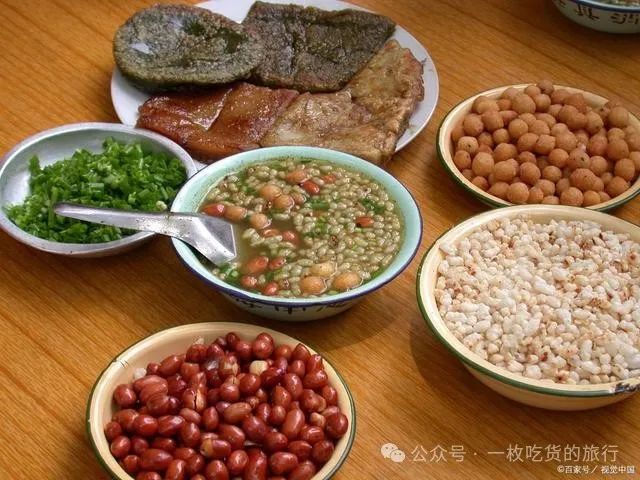 恭城油茶是桂林地区的传统名点,被誉为“桂林三宝”之一。恭城油茶是瑶族人民的一种传统饮食,长期喝恭城油茶有健胃消食、排毒养颜等好处。恭城油茶采用传统工艺制作,配料有高山茶叶、姜、蒜、花生、芝麻、糯米等,口感独特,茶味浓厚,微涩微辣,也称之为中国式咖啡 。