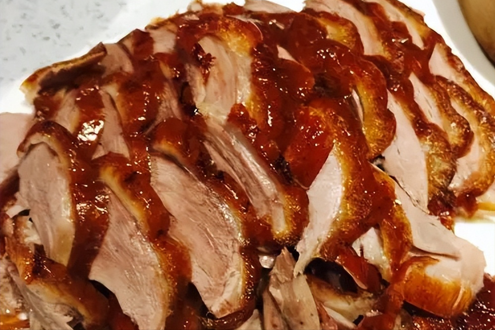 说到中国的烤鸭,就不得不提北京烤鸭。北京烤鸭沿袭了中国烤鸭的传统烹饪方法,以其色泽红亮、外皮脆脆内肉嫩滑而闻名。北京烤鸭选用的鸭子以北京填鸭和谷饲鸭为主,经过炭火烤制,鸭皮酥脆,鸭肉肥而不腻,香气四溢。一口下去,皮脆肉嫩,肥瘦相间,带着天然的鸭香,让人回味无穷。