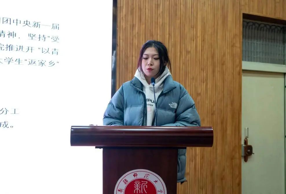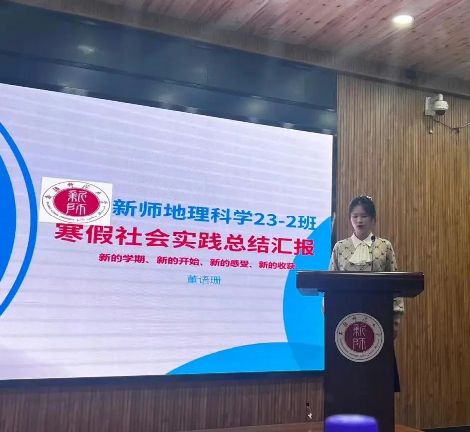 地理科学23-2班团支书董语珊同学从团支部实践活动完成情况、实践活动成果与收获、存在的问题与改进措施方面、总结与展望这四个方面展开了汇报。地理科学23-2团支部的同学们积极参与本次寒假社会实践活动,整体社会实践活动完成率百分之百。在社会实践成果与收获方面,娜迪娅·巴格努尔、古合热尼萨·麦图隼以及董语珊同学表现优异。汇报的最后环节,董语珊同学引用习近平总书记对青年的寄语:“当代中国青年生逢其时,施展才干的舞台无比广阔,实现梦想的前景无比光明”,鼓励同学们为中华民族伟大复兴中国梦实现贡献青春力量。