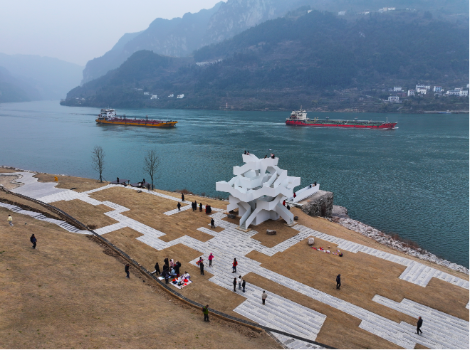宜昌市夷陵区乐天溪镇长江西陵峡口,三峡公路莲沱景观带上,大批游客在这里旅游打卡,感受江岸美化和公路风景道建设的视觉盛宴。