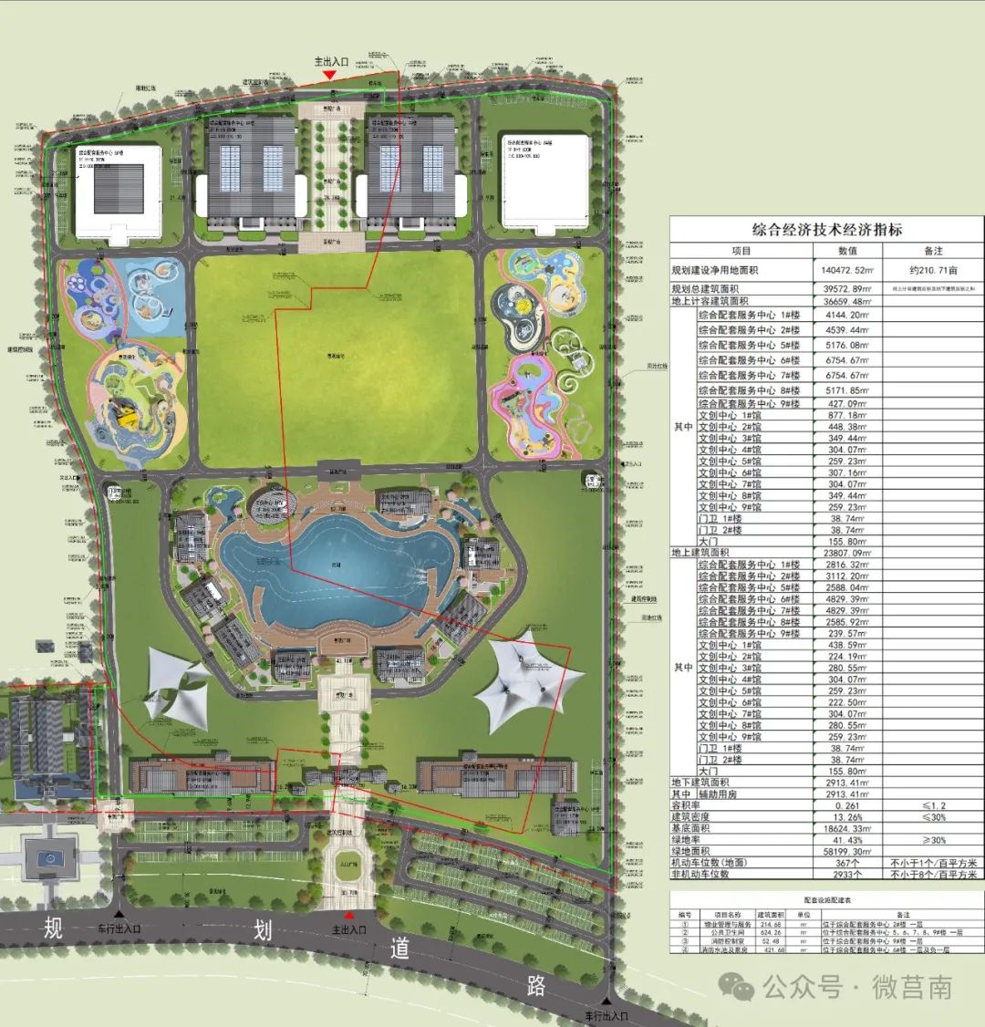 莒南县莲花湖国际旅游休闲度假区位于北环路东段北侧,用地面积140472.52平方米(210.7亩),总建筑面积39572.89平方米,地上建筑面积36659.48平方米,地下建筑面积2913.41平方米,容积率0.26,建筑密度13.26%,绿地率41.43%。