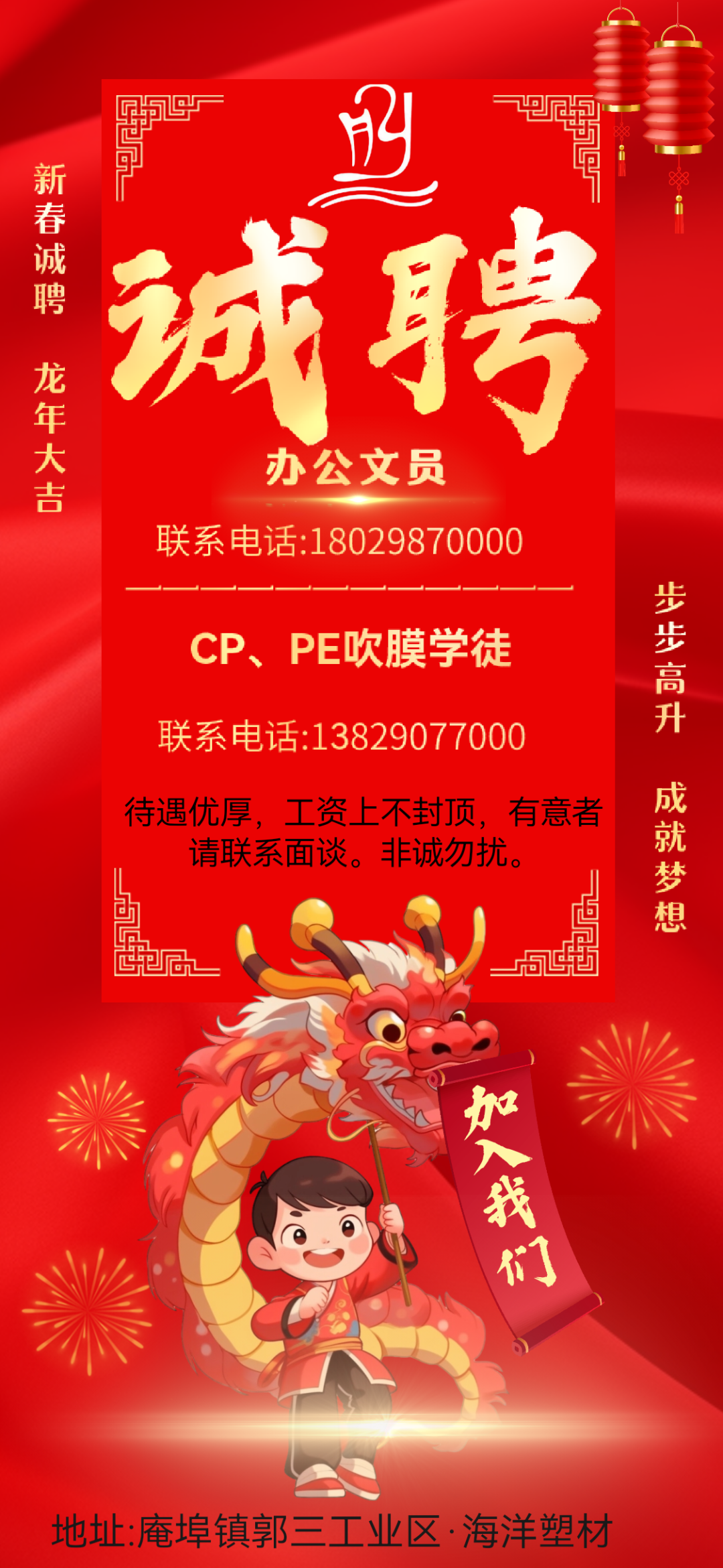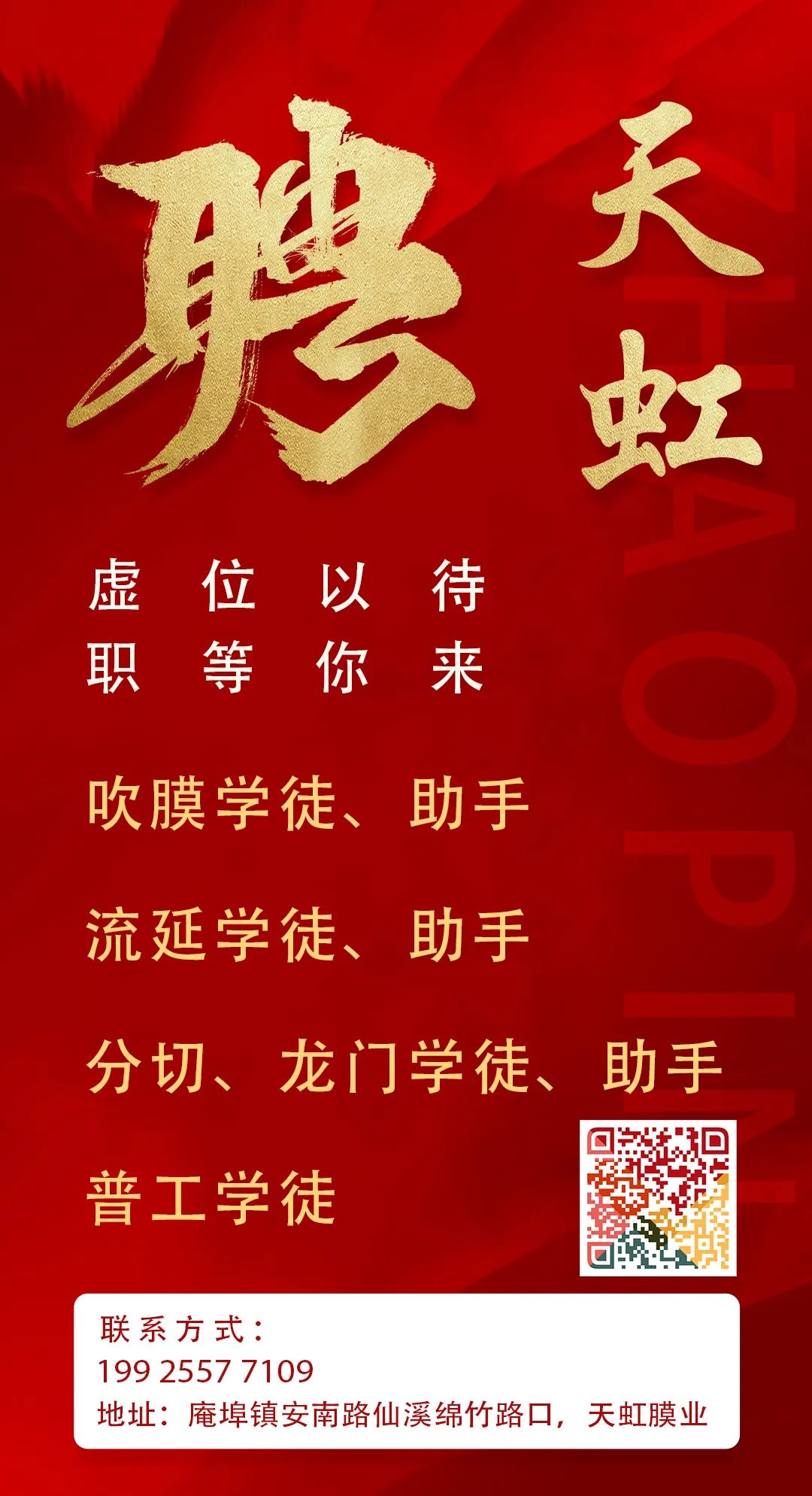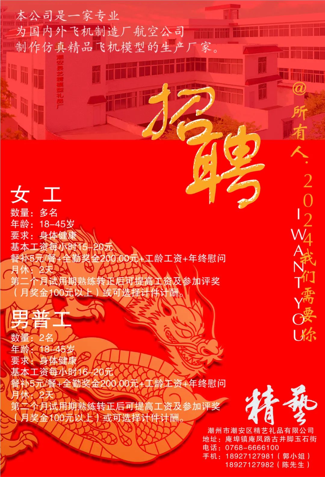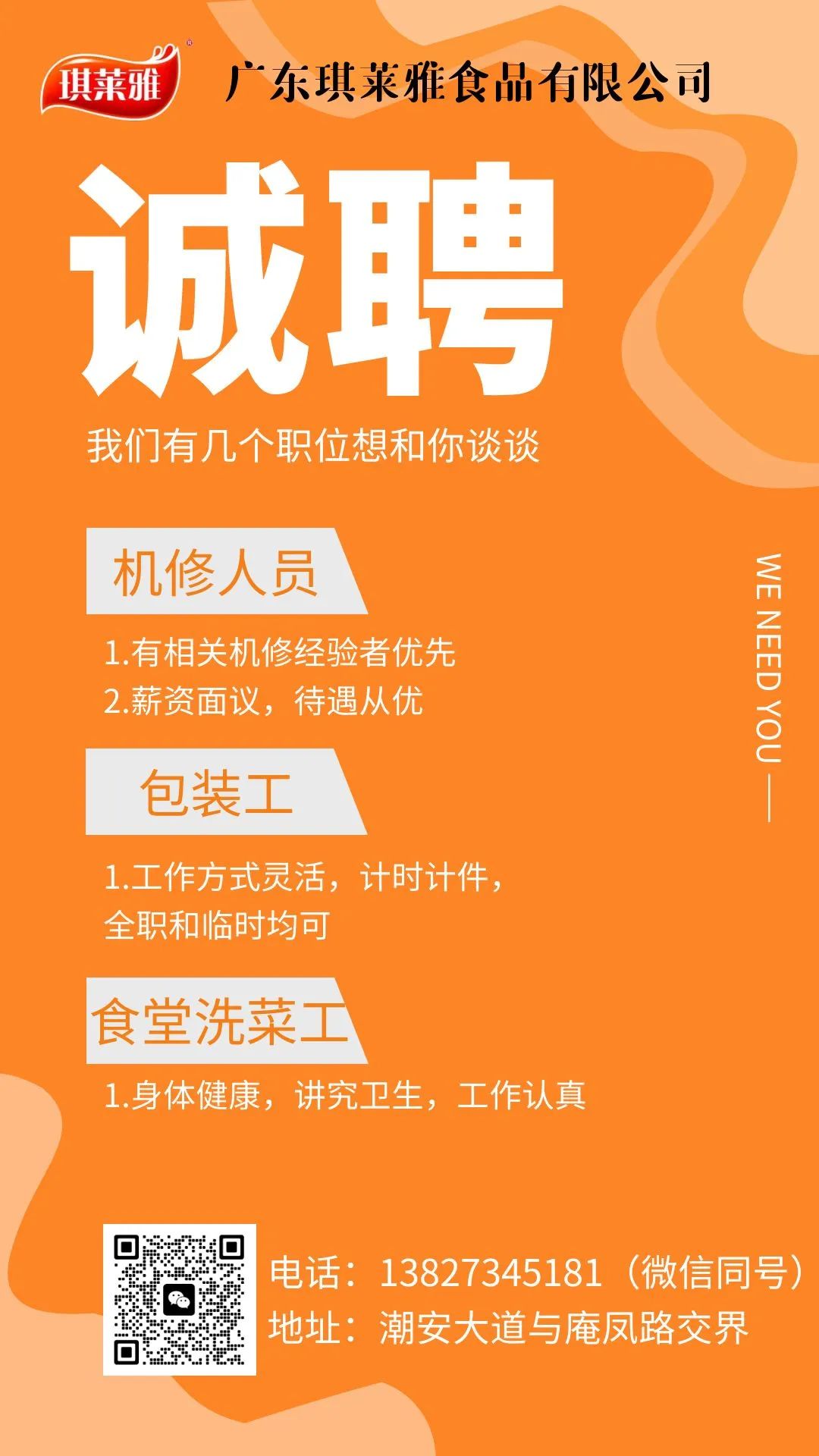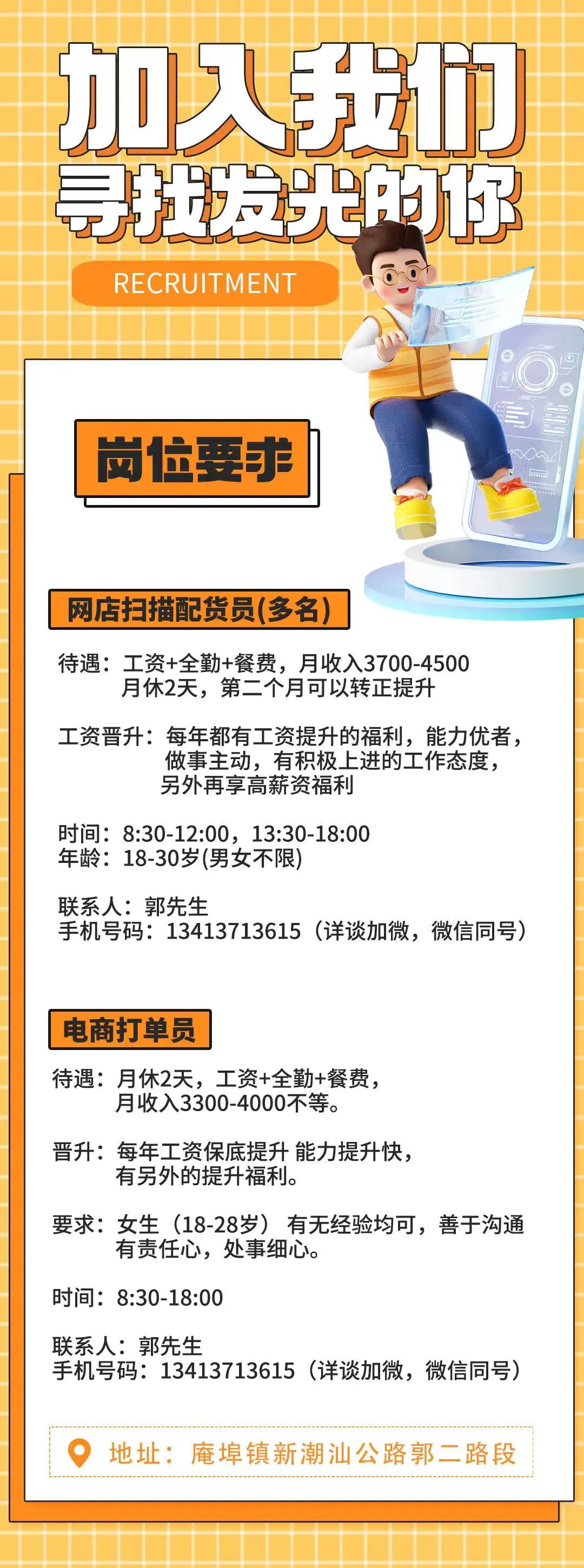 以上岗位工作地点:庵埠镇刘陇村(庵凤路)。