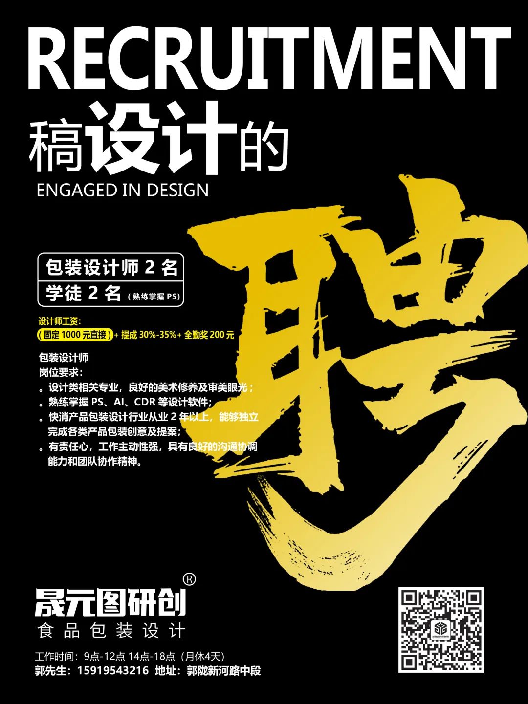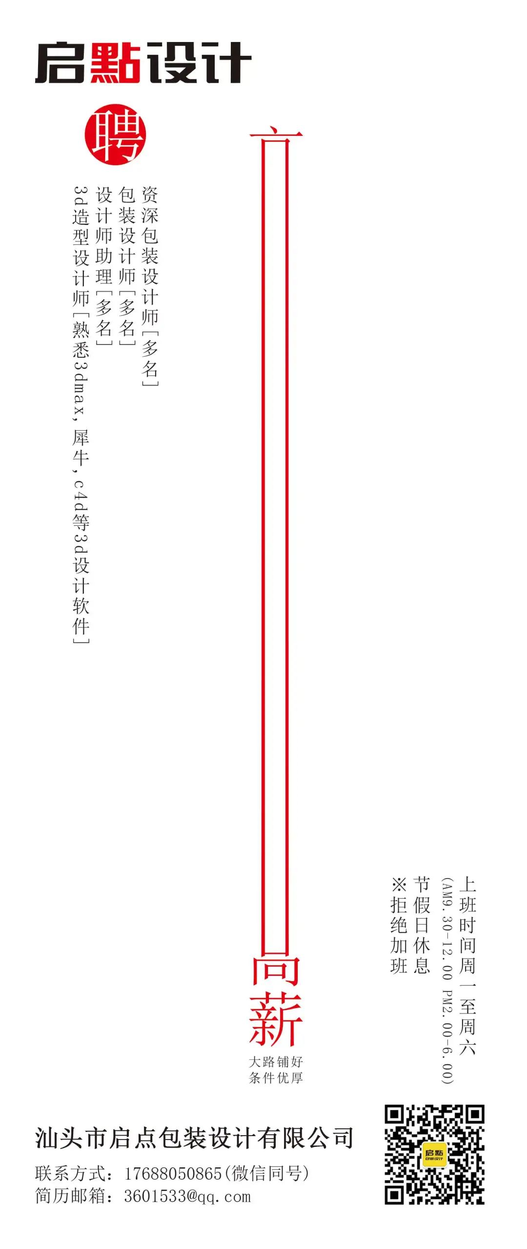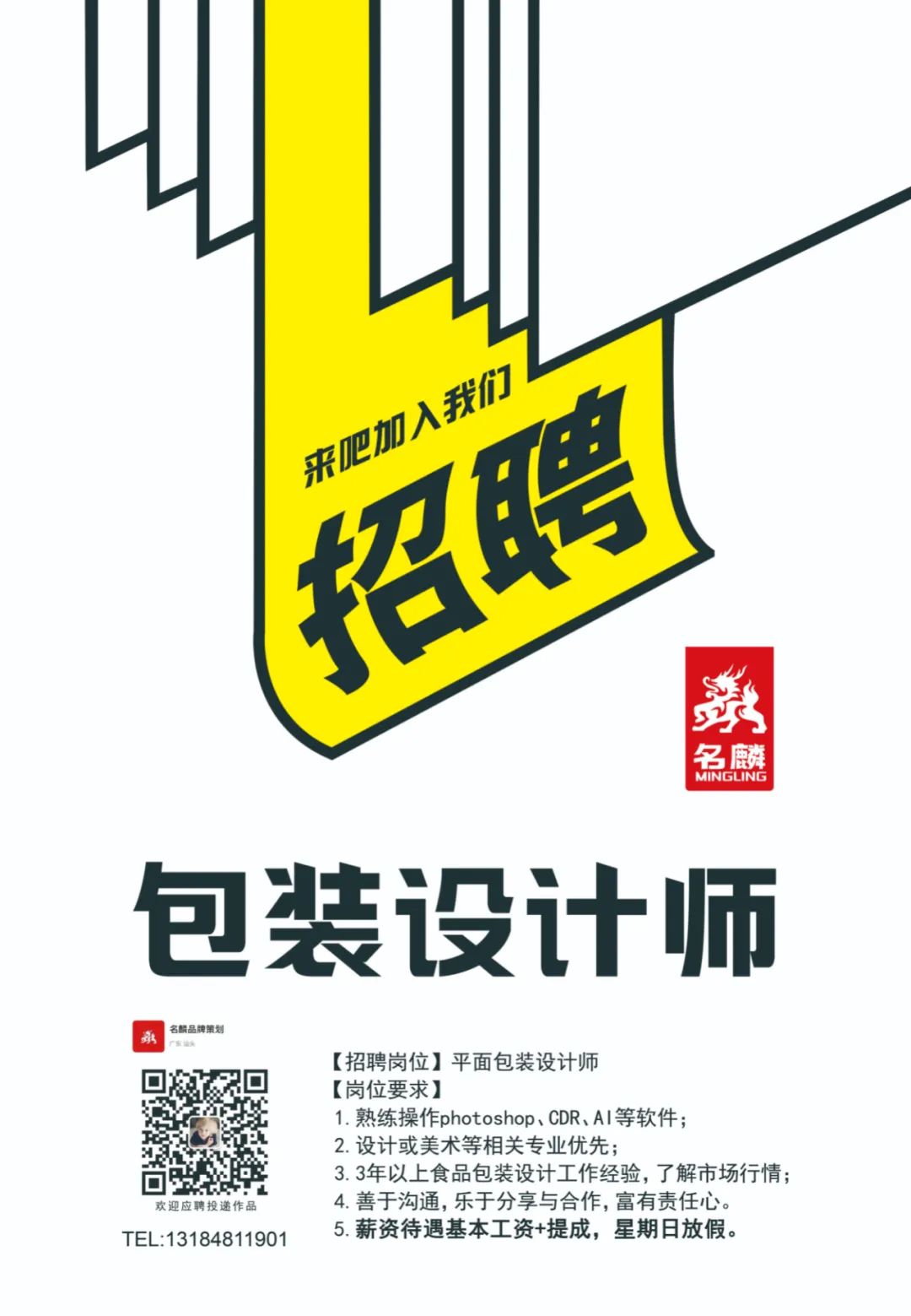 工作内容:负责公司海报以及活动展览等相关物料设计;产品包装延伸稿,对包装印刷要求有基础,精通AI或PS,月薪约5-8k。
