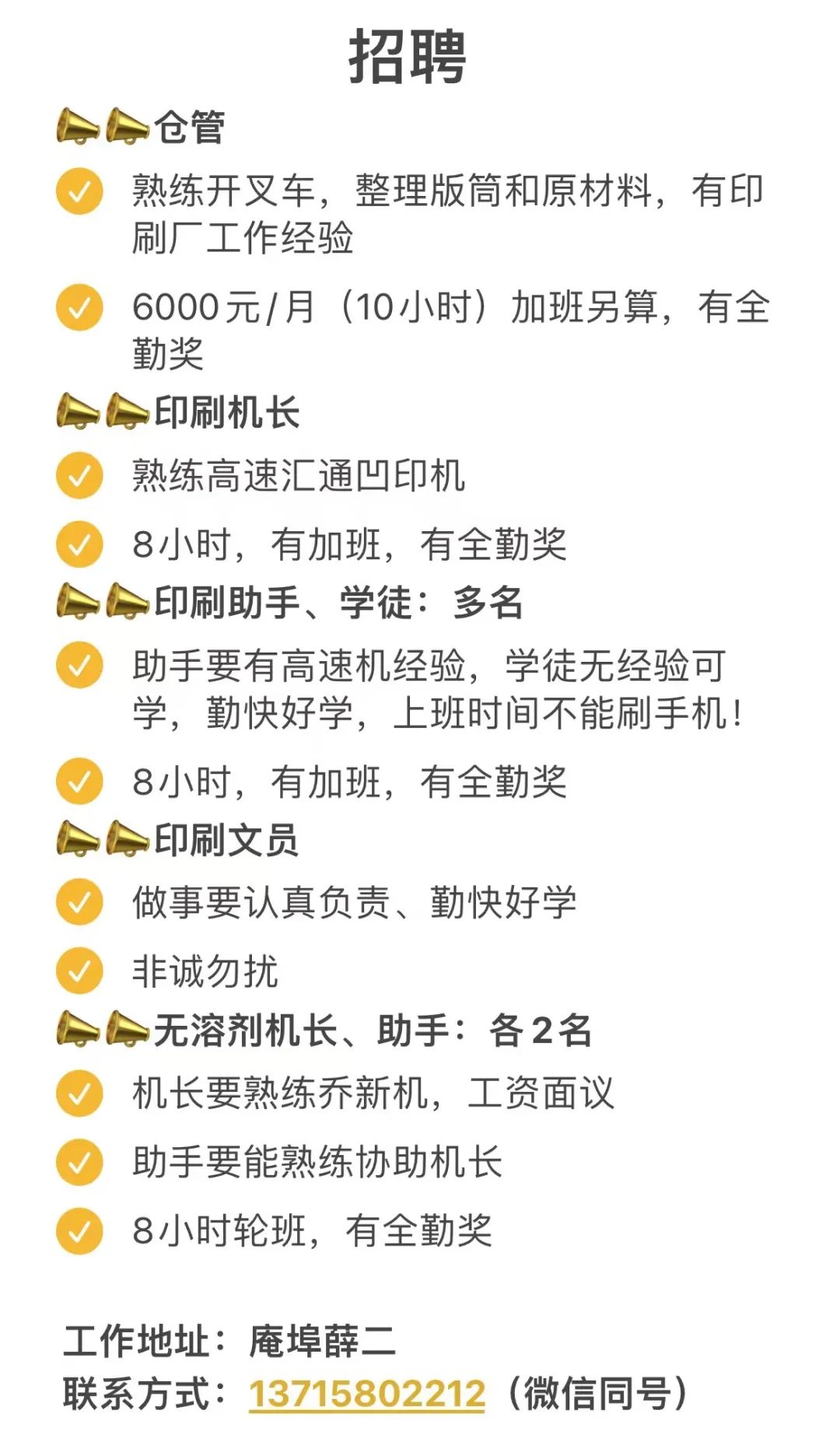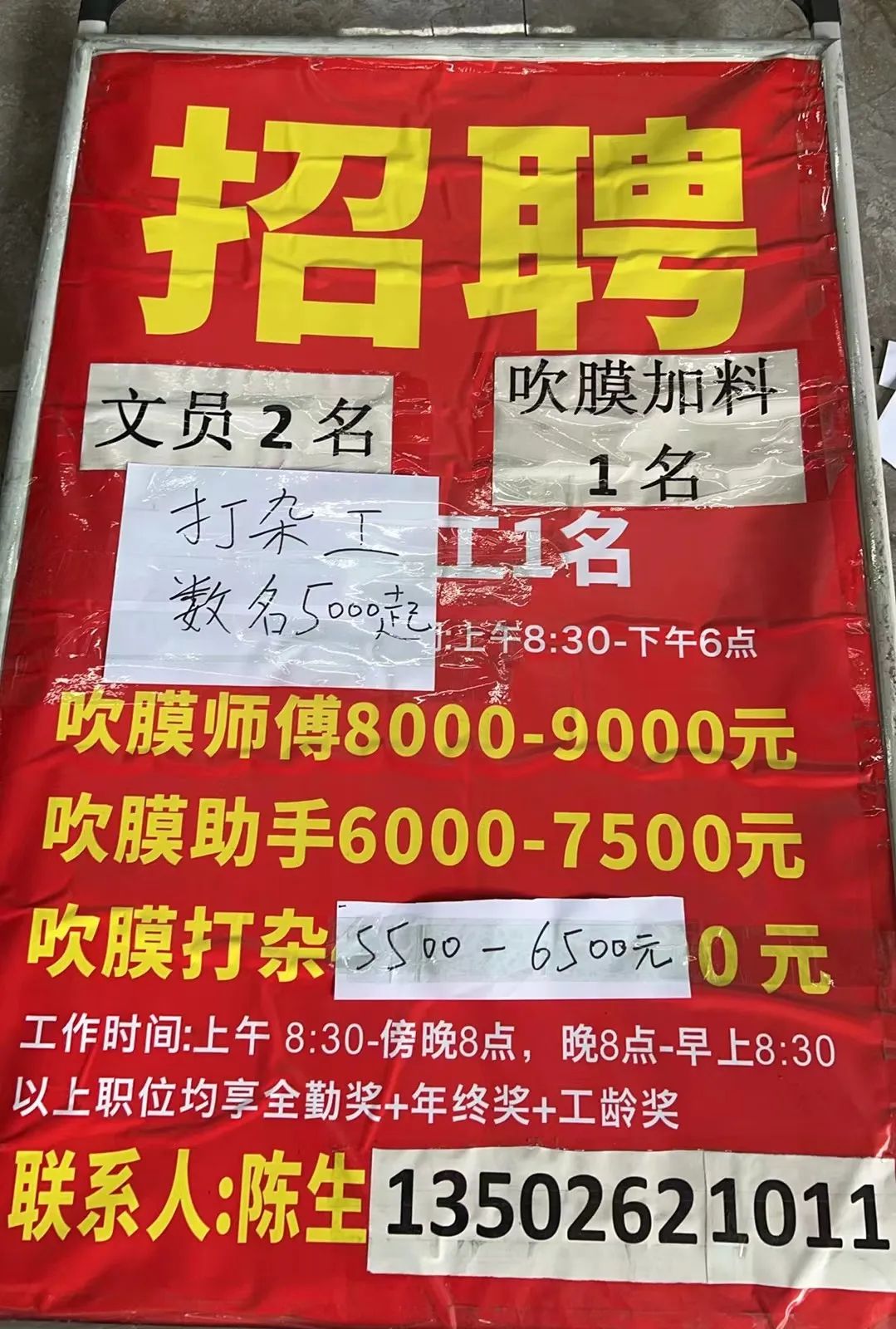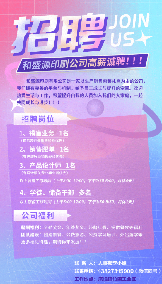 (1)印刷助手:工资4500-5500,需有凹印工作经验
