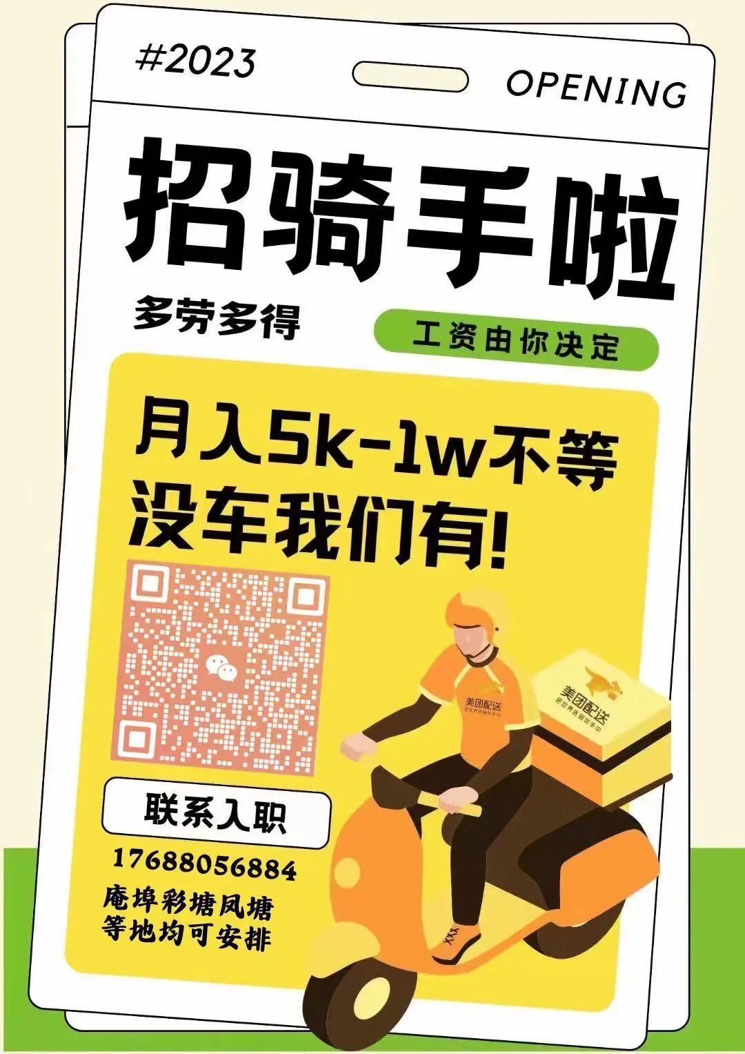 美团外卖各地招骑手 !全职兼职均可!