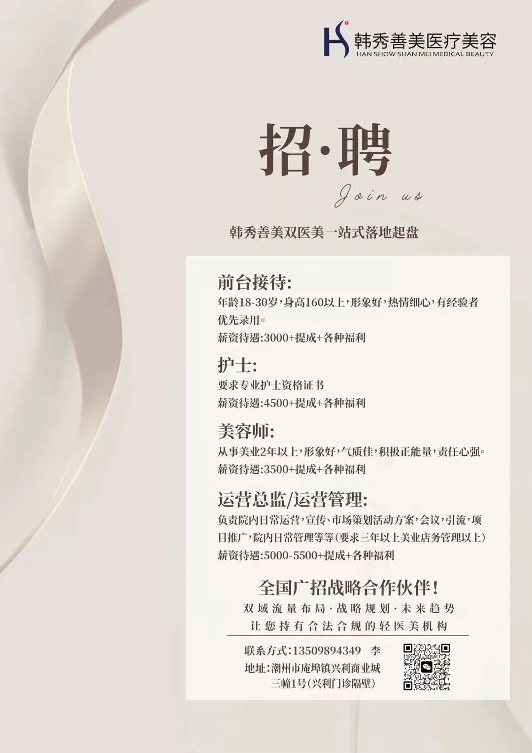 有意者可到店面试或联系门诊部负责人 2024.06.15