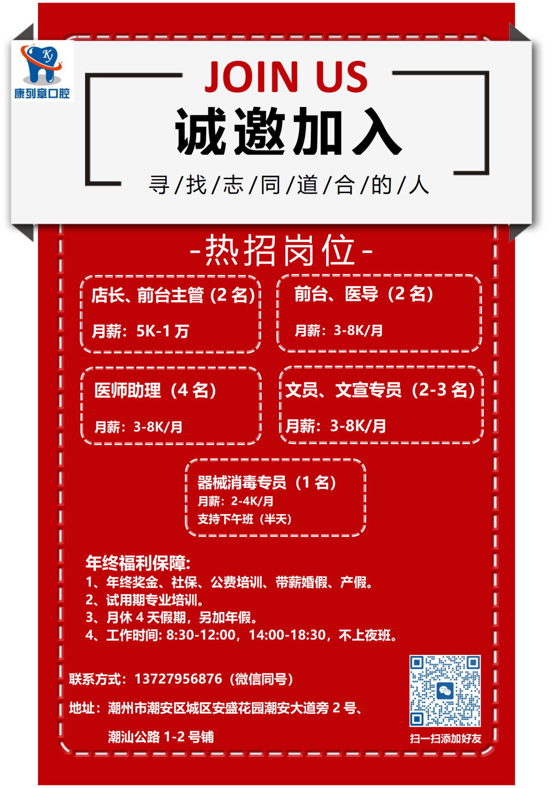 康列章口腔门诊招聘: