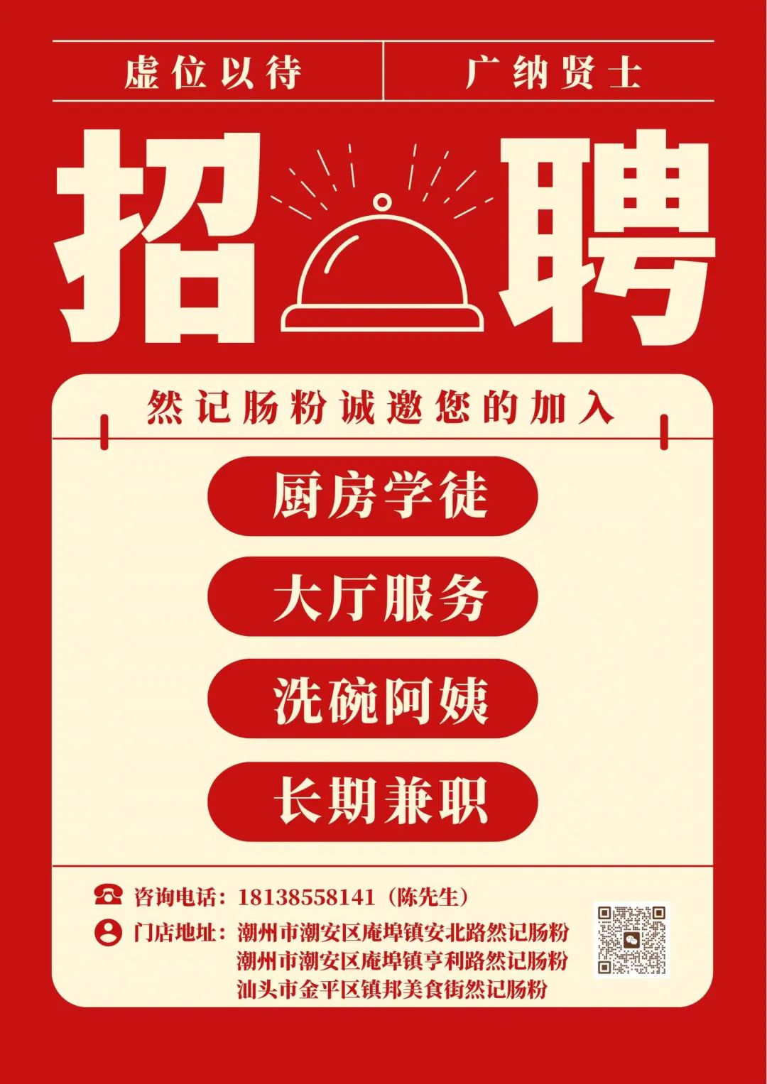 庵埠镇蒸尚美餐饮店招聘厨师学徒工,详情请咨询电话或微信13500116655,地址:金里路中段。