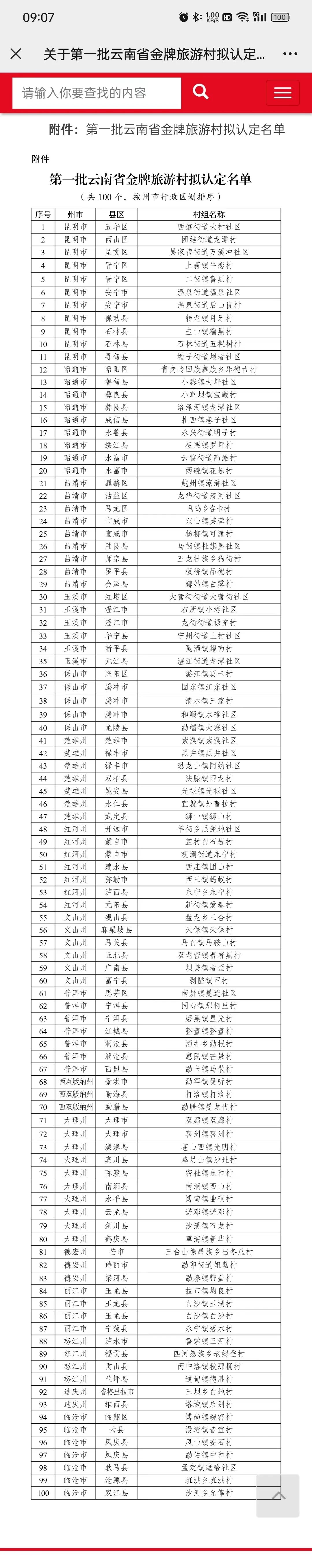 关于第一批云南省金牌旅游村拟认定名单的公示